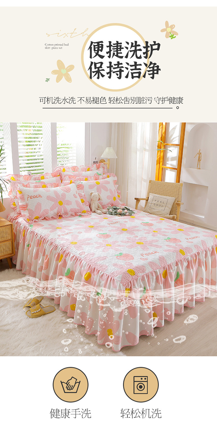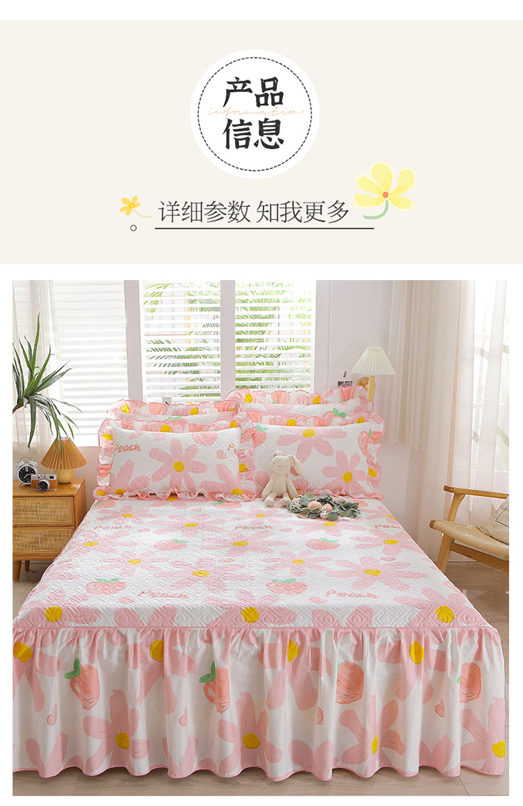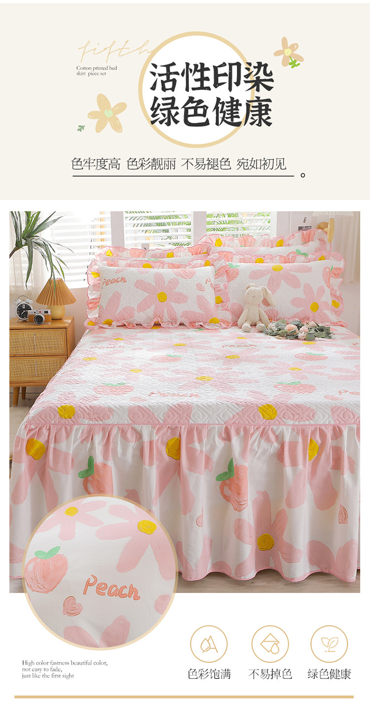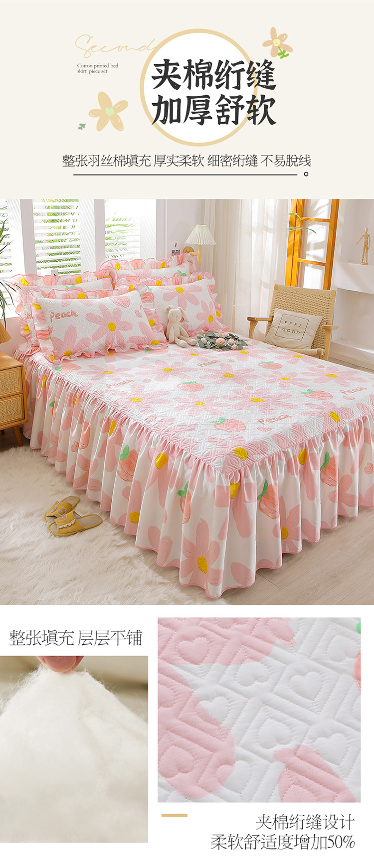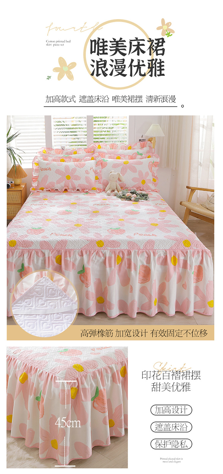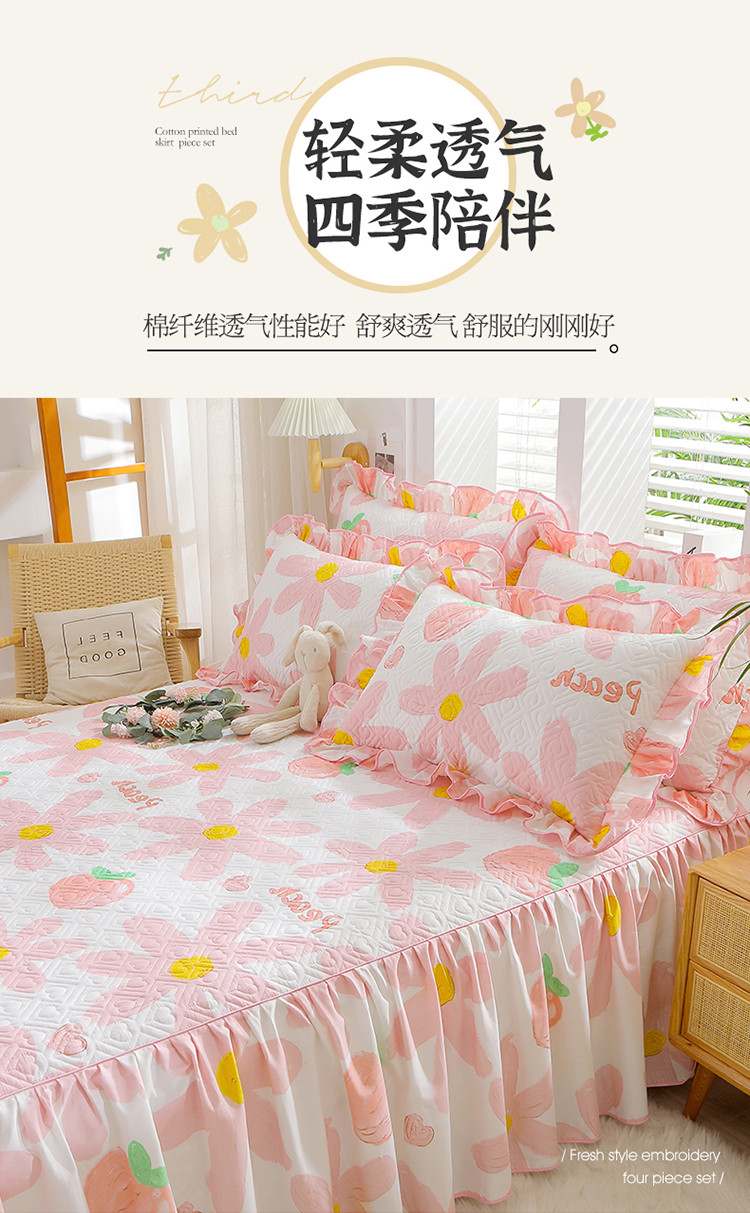 宜凡家纺 2023新款全棉印花花边床裙三件套 静待花开-粉