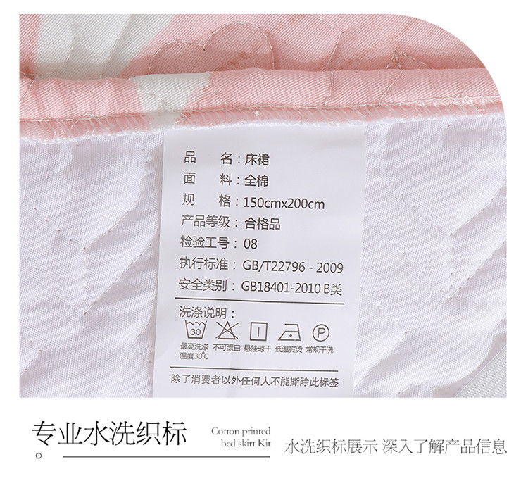 • 91家纺网 家纺一手货源 找家纺 宜凡家纺 2023新款全棉印花花边床裙三件套 静待花开-粉