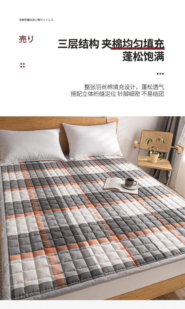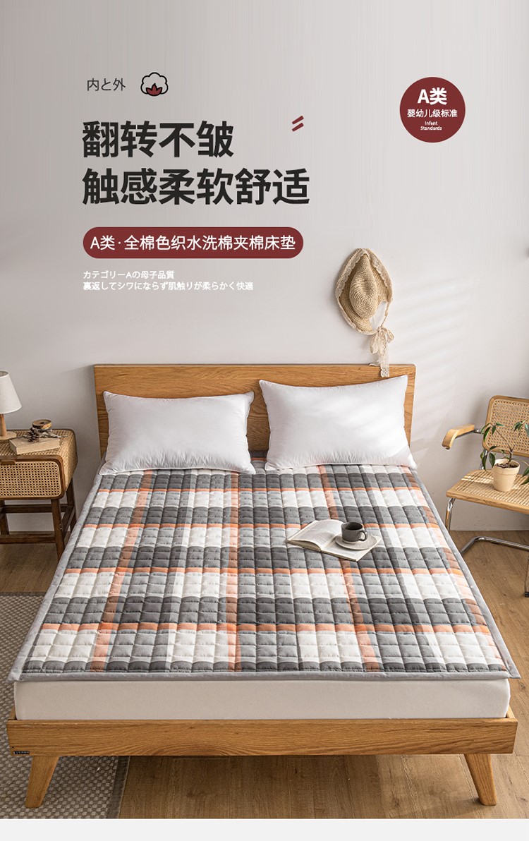 东宇 2022新款A类全棉色织水洗棉夹棉床垫 柏林灰