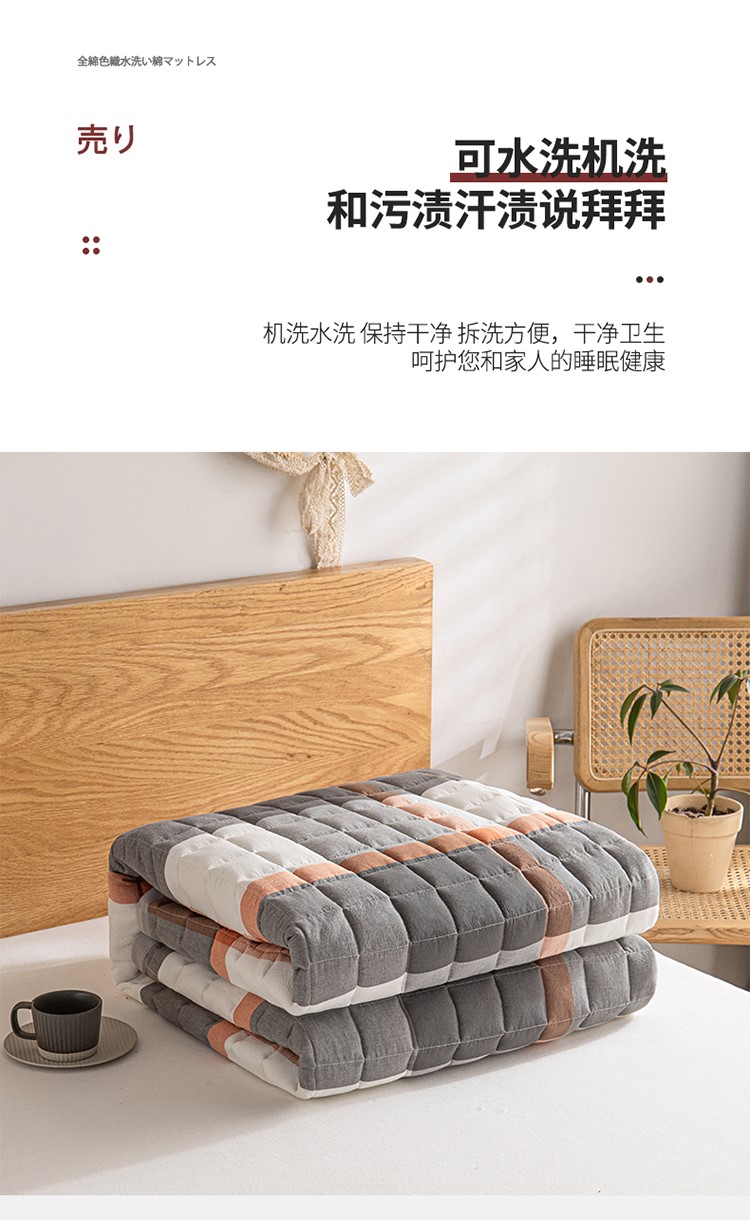 商品名称:东宇 2022新款A类全棉色织水洗棉夹棉床垫 柏林灰