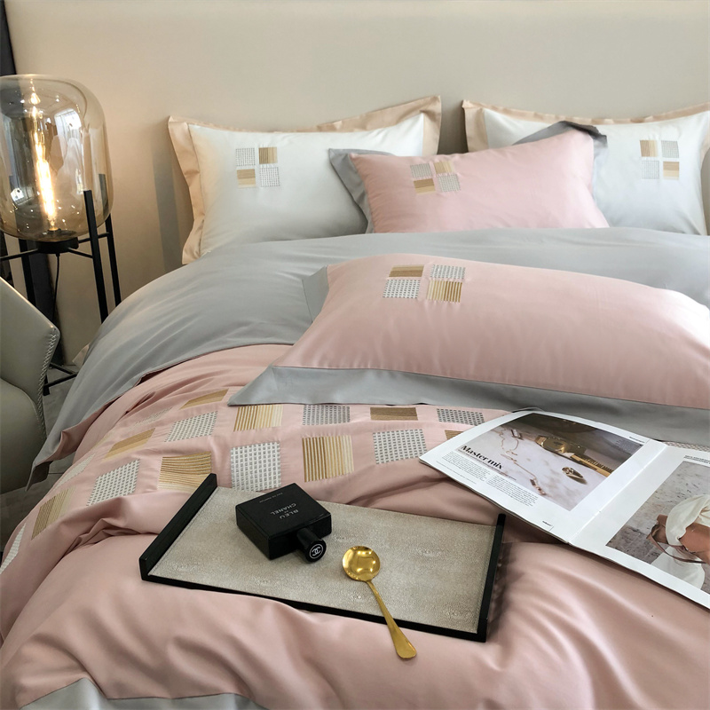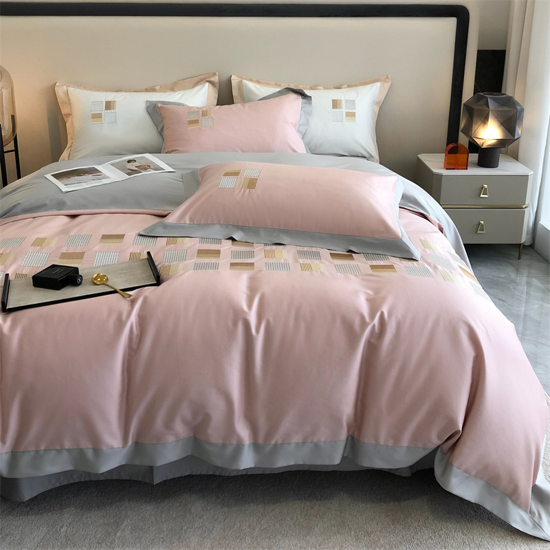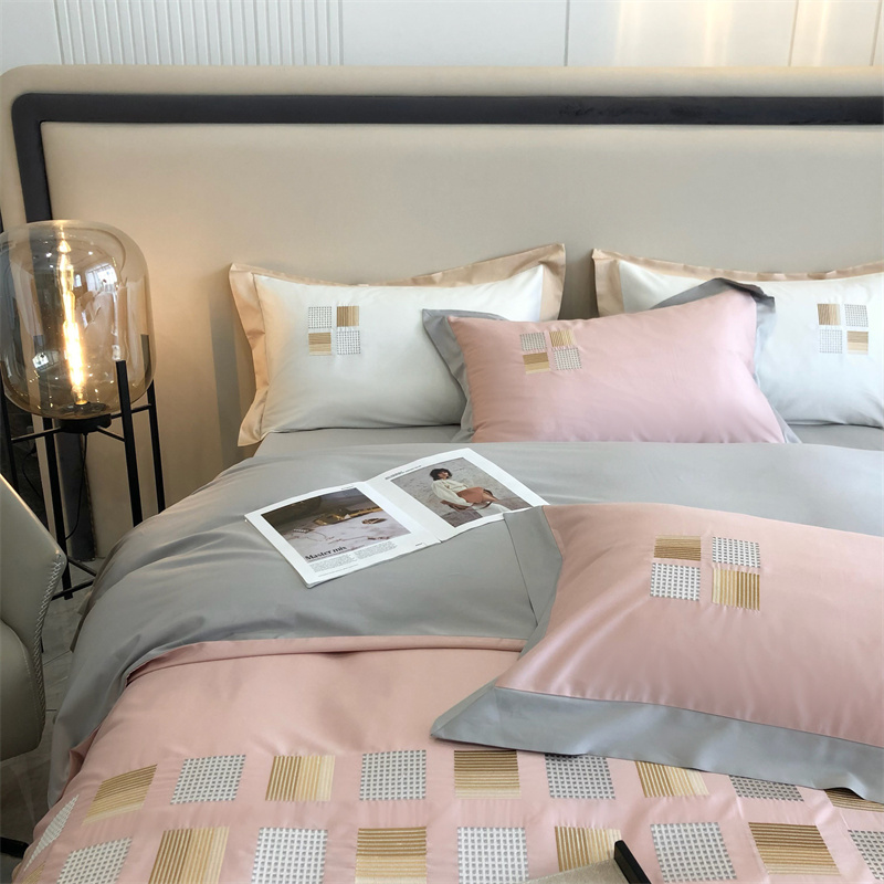 商品名称:太古汇 2022新款长绒棉高定绣花魔方四件套场景一 魔方-粉玉