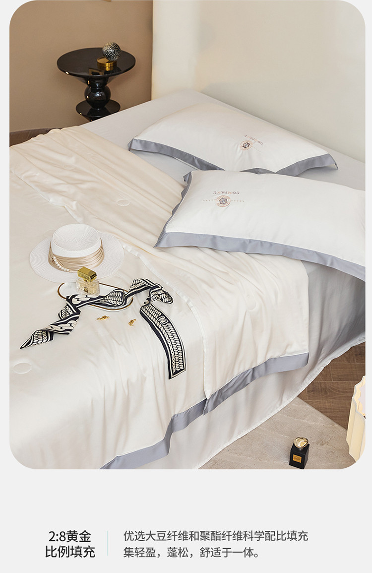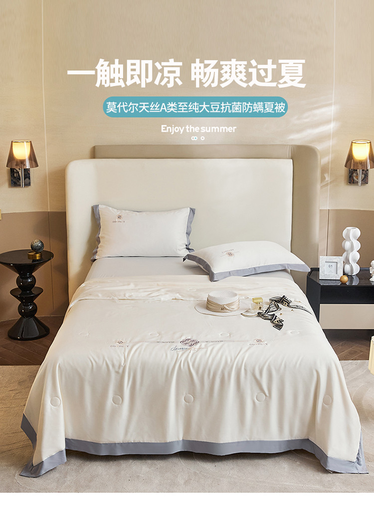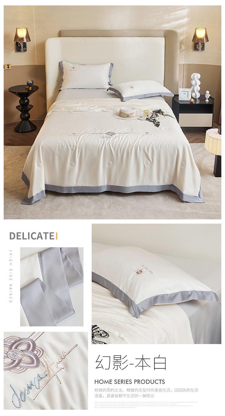当前位置: 91家纺网 > 商品网购 > 床品套件 > 四件套 > 夏被四件套 > 2022新款莫代尔天丝A类至纯大豆抗菌防螨夏被 幻影-本白