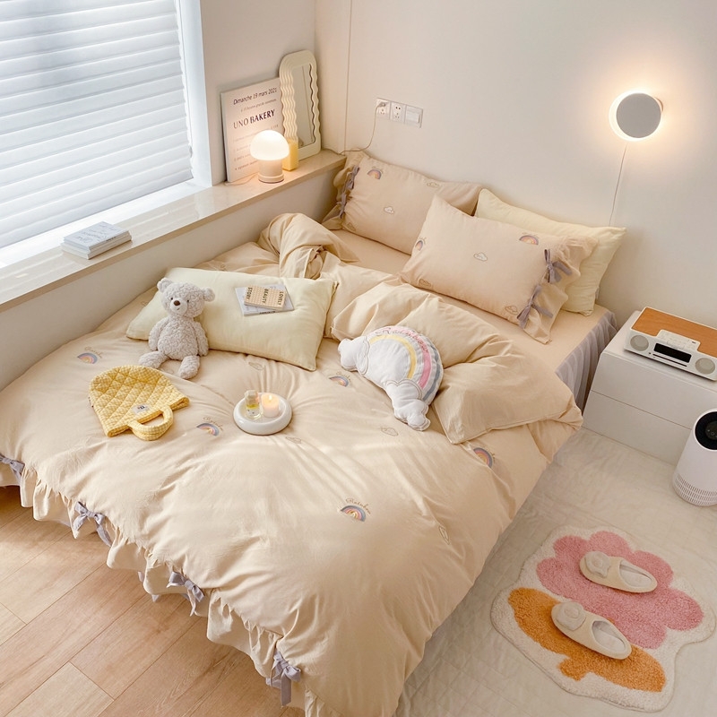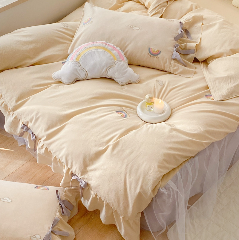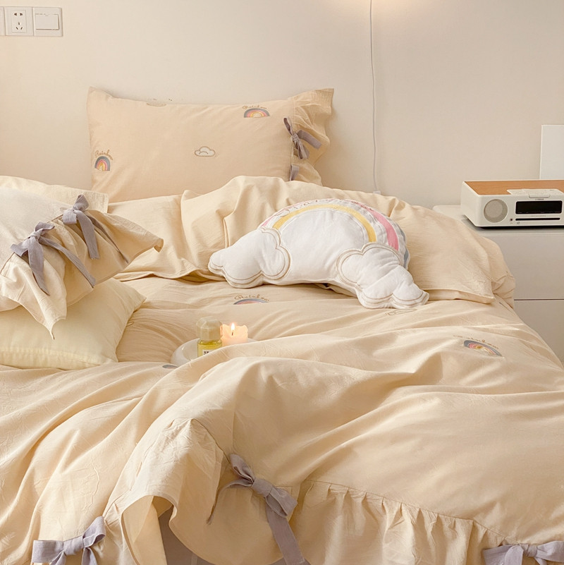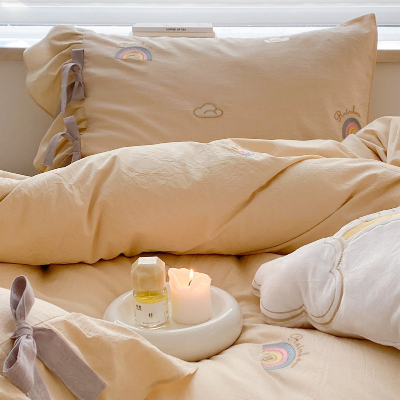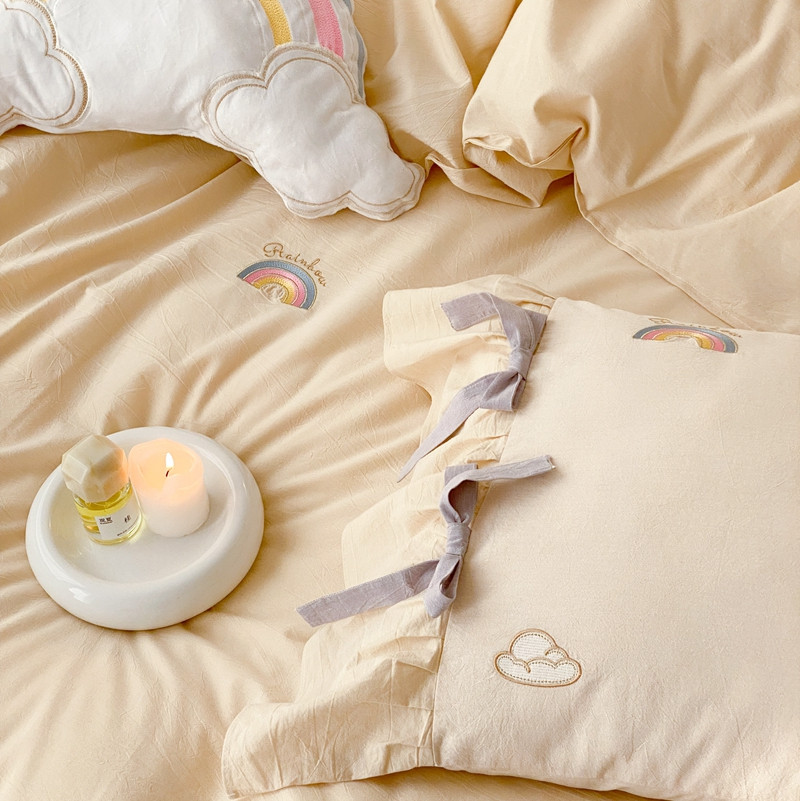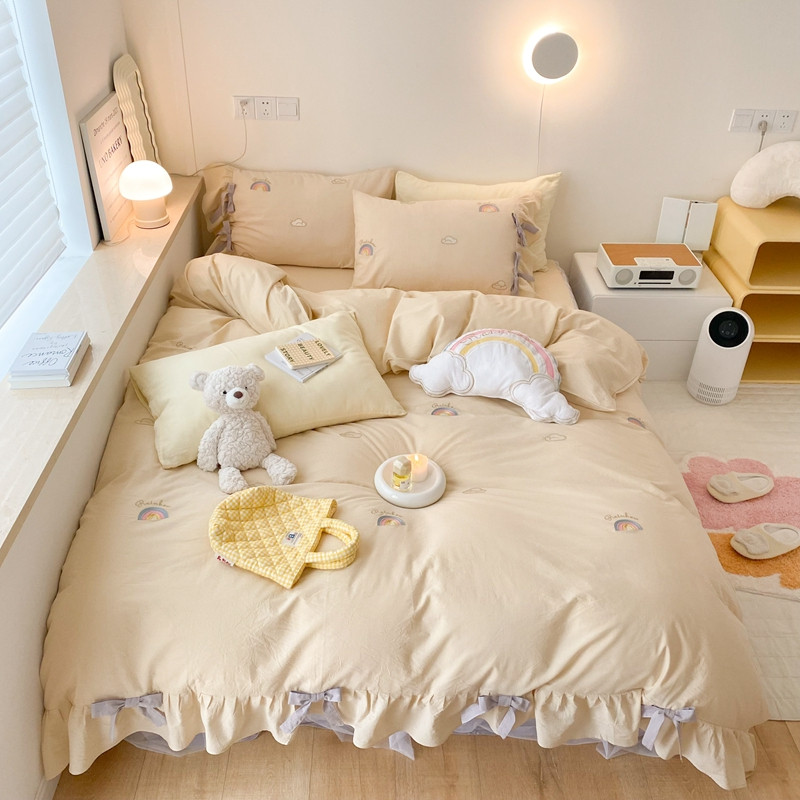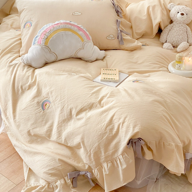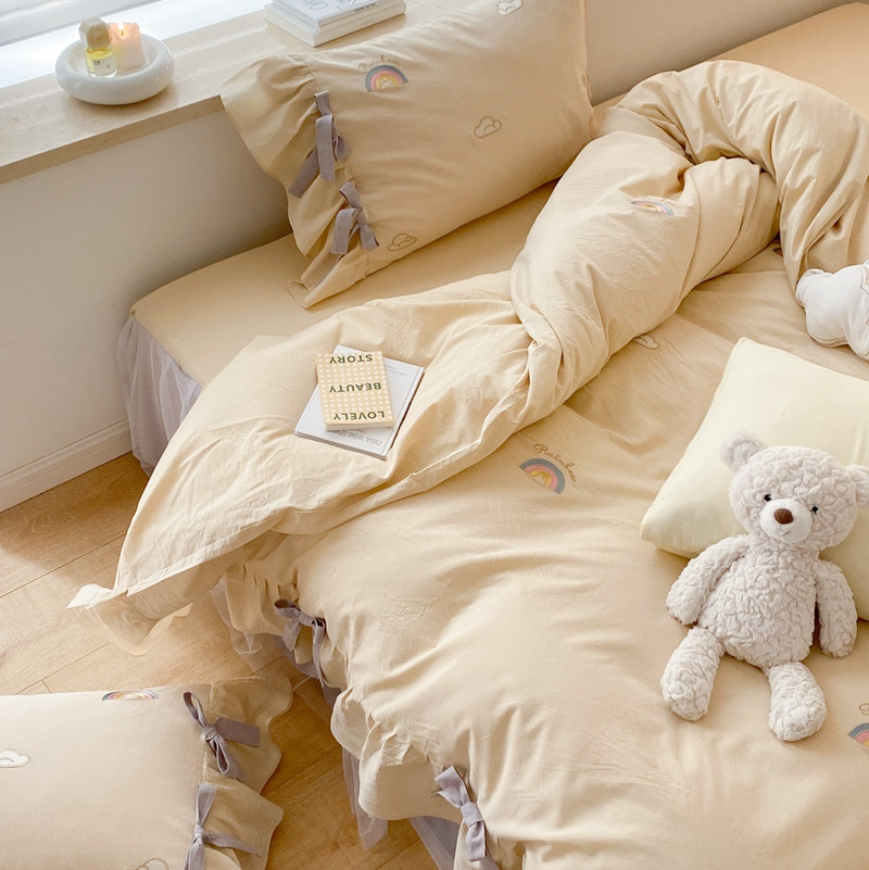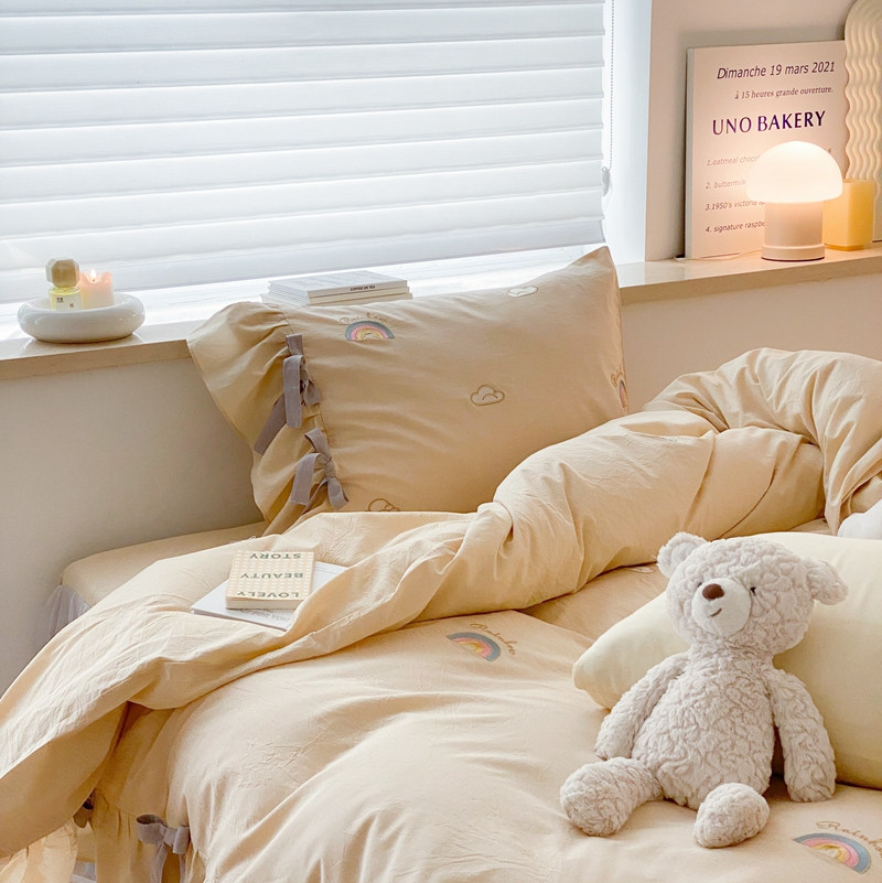 (总)嗨购 2022新款40支水洗棉刺绣花边四件套-阳光玫瑰,阳光玫瑰-粉,阳光玫瑰-黄,阳光玫瑰-蓝