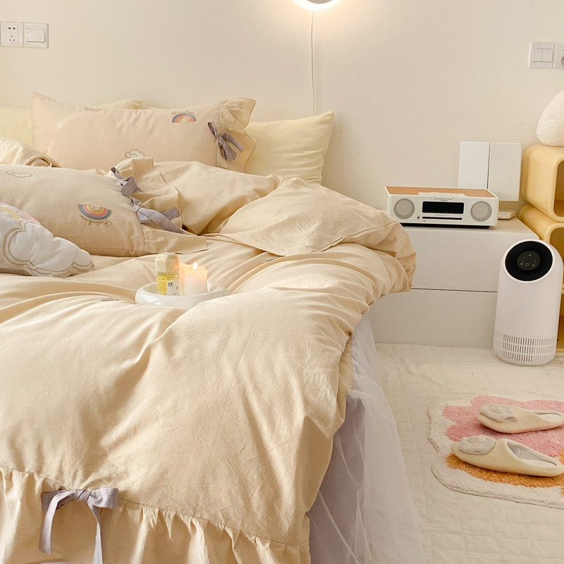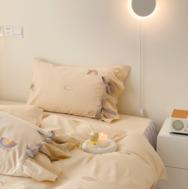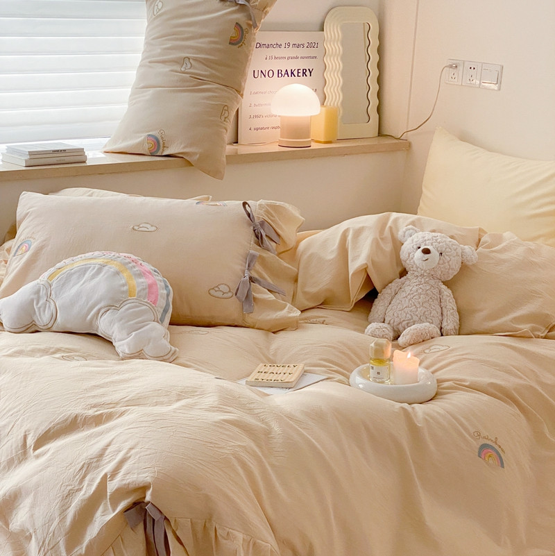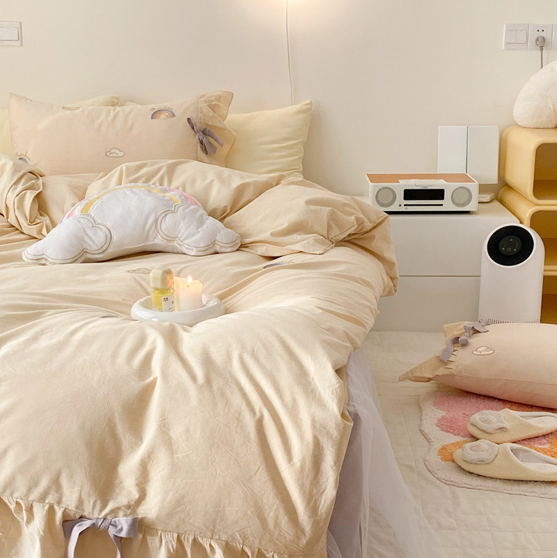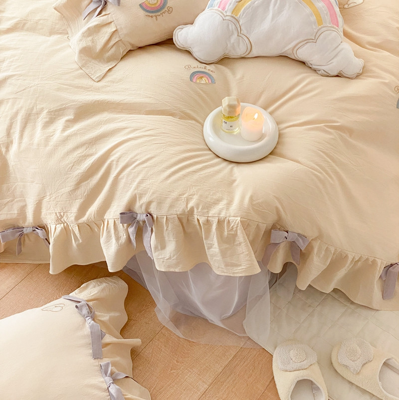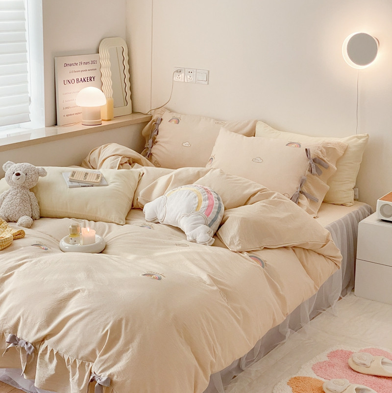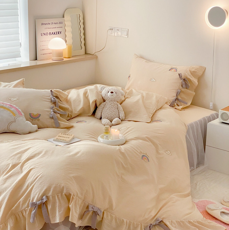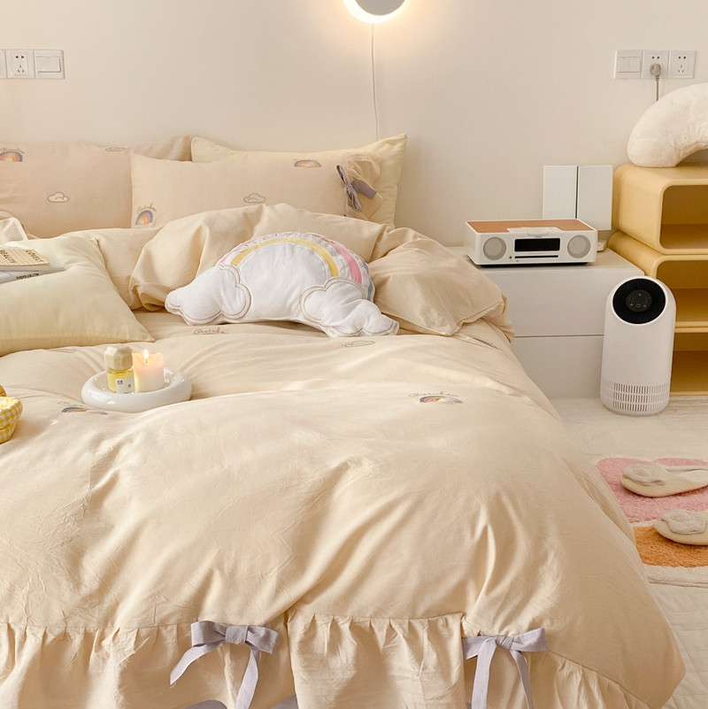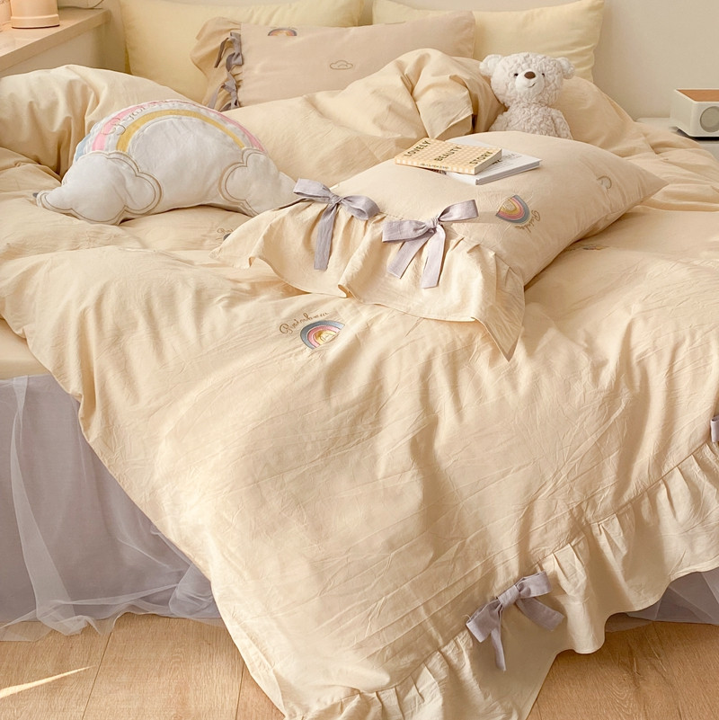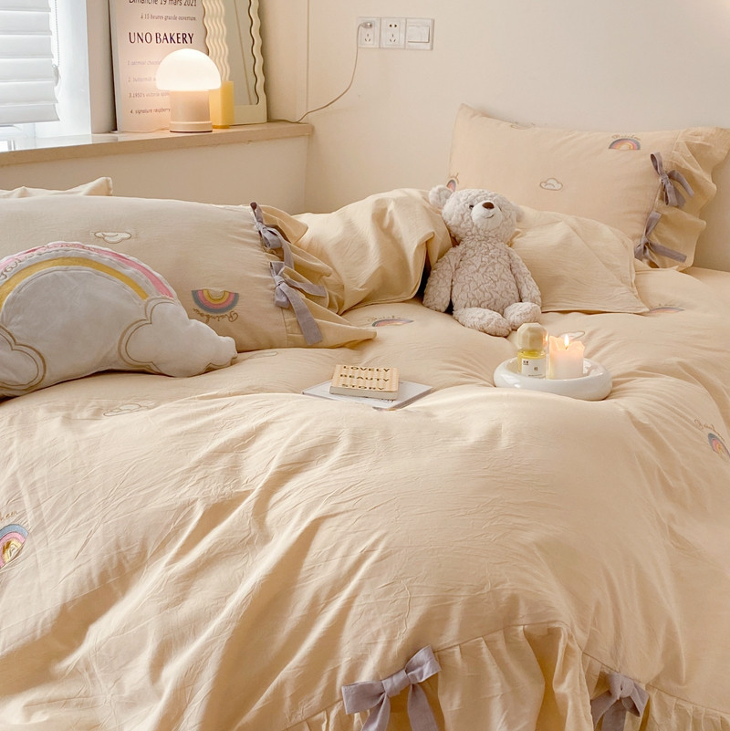 (总)嗨购 2022新款40支水洗棉刺绣花边四件套-阳光玫瑰,阳光玫瑰-粉,阳光玫瑰-黄,阳光玫瑰-蓝