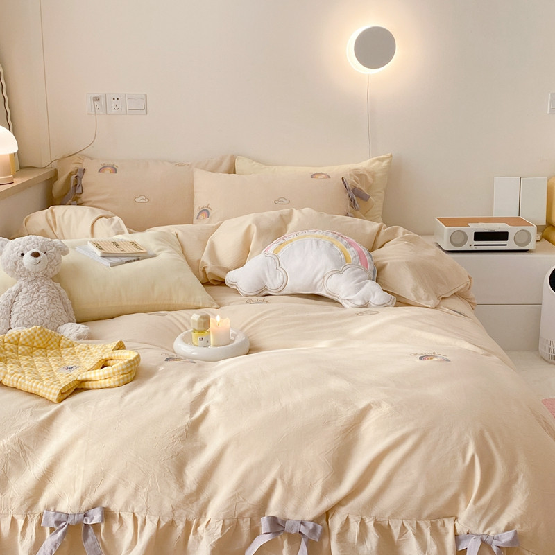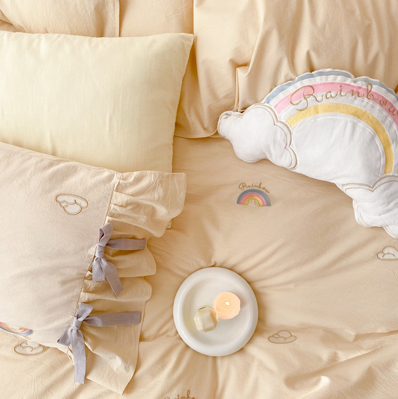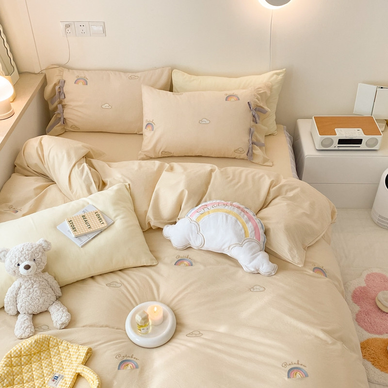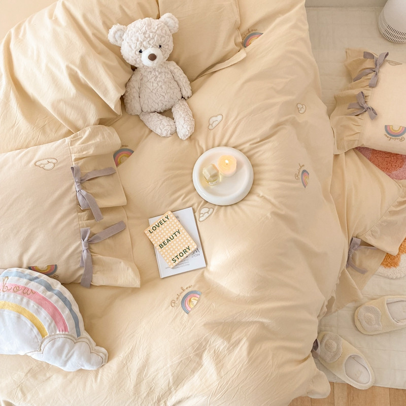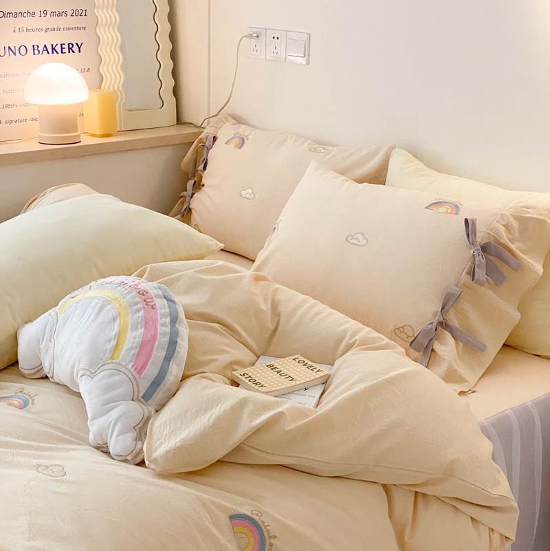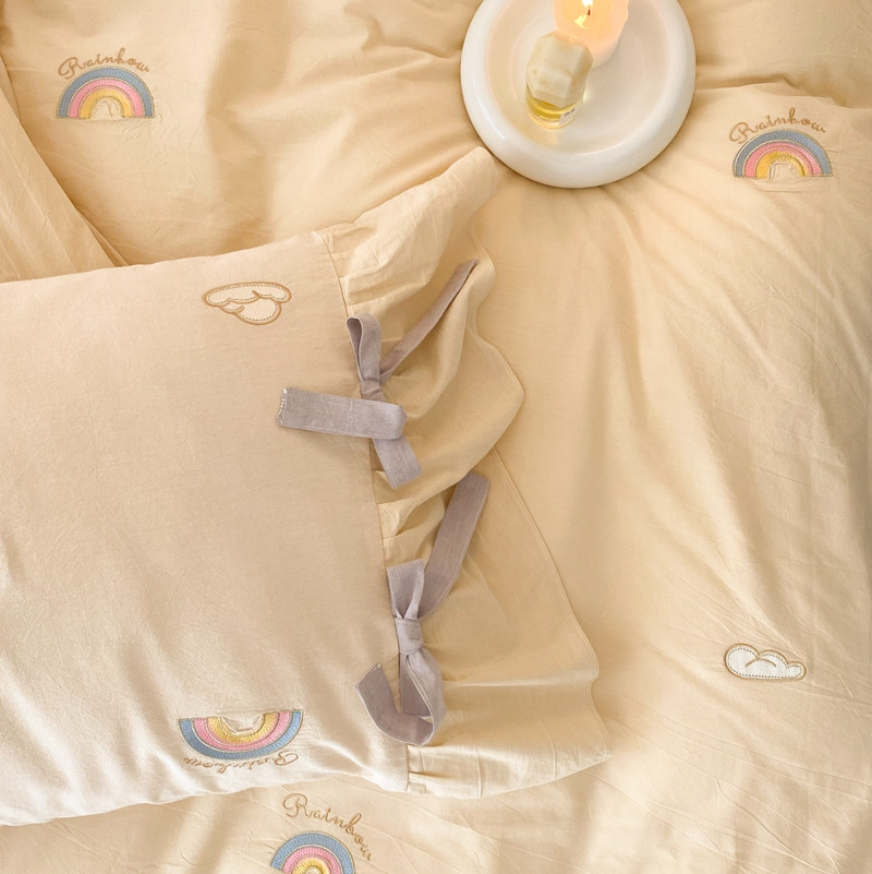 商品名称:嗨购家纺 2022新款色织水洗棉四件套-彩虹 彩虹黄