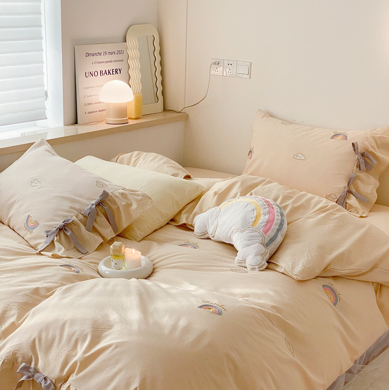(总)嗨购家纺 2022新款色织水洗棉四件套-彩虹,彩虹粉,彩虹黄,彩虹灰