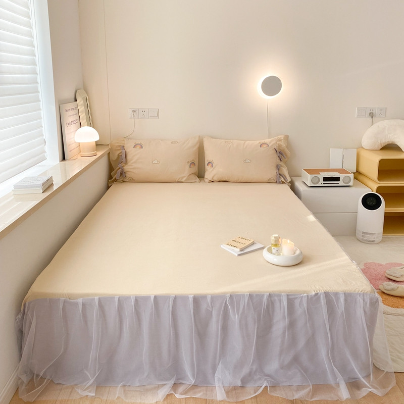 (总)嗨购 2022新款40支水洗棉刺绣花边四件套-春日秋千,春日秋千-粉,春日秋千-绿