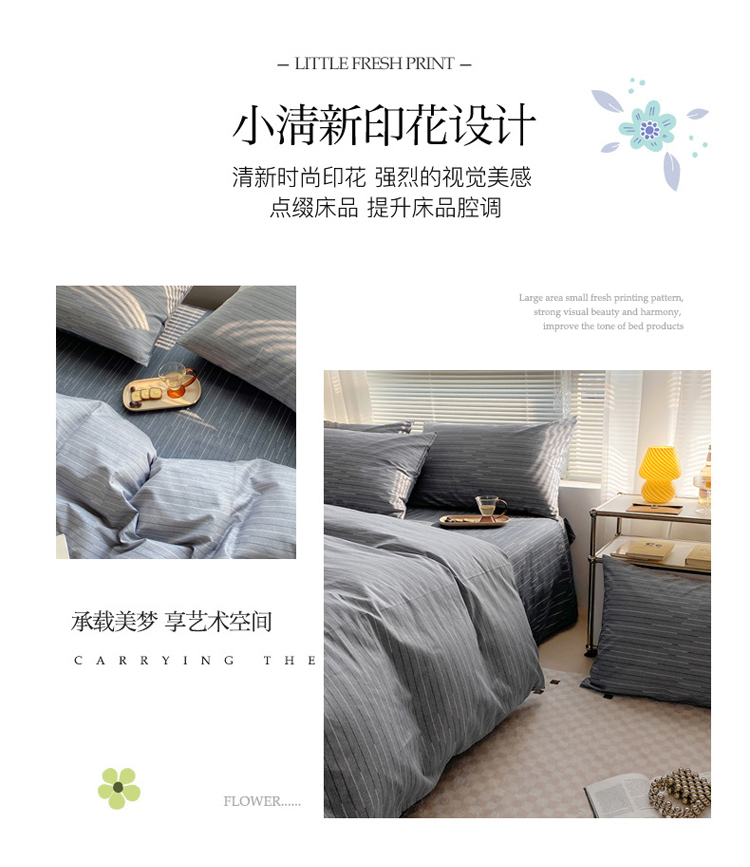 田野 2022新13372全棉印花小清新四件套纯棉床笠三件套 印象