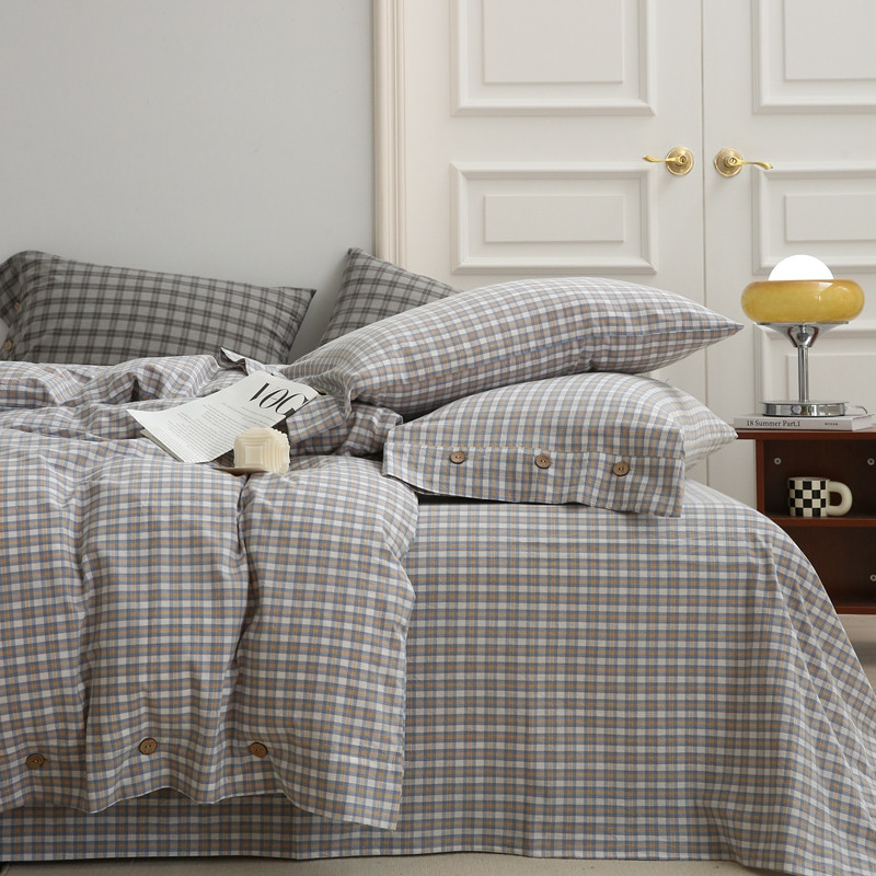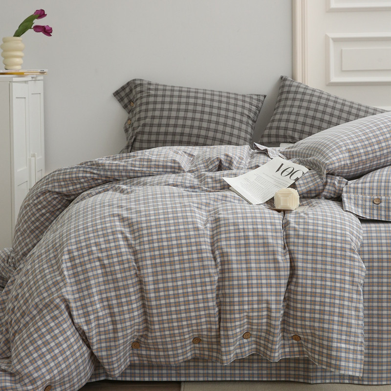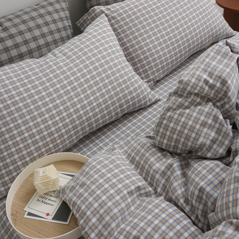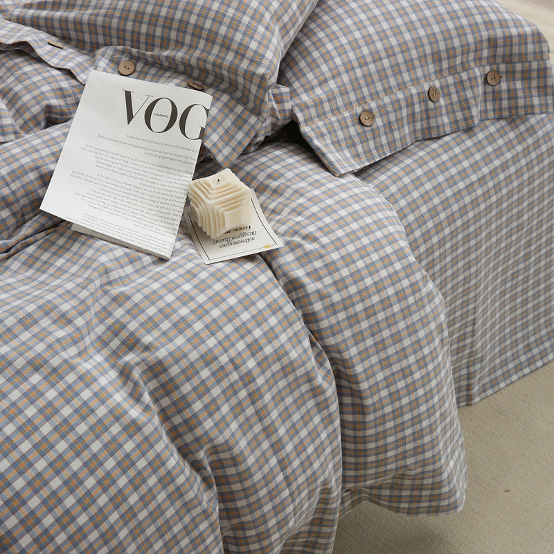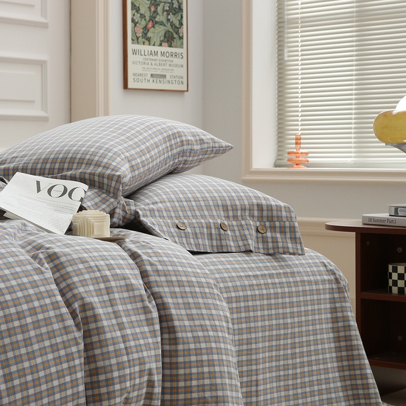 榻尚 经典田园格子全棉色织水洗棉四件套 沐色(黄灰)