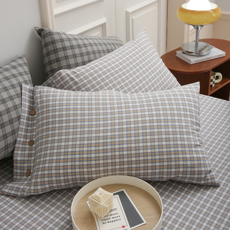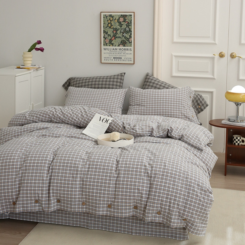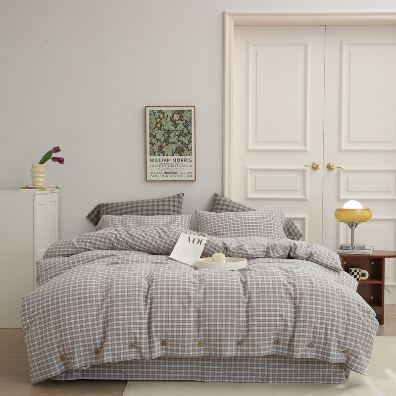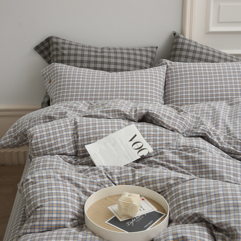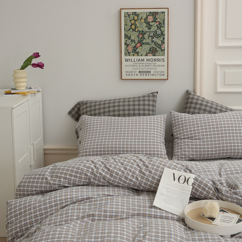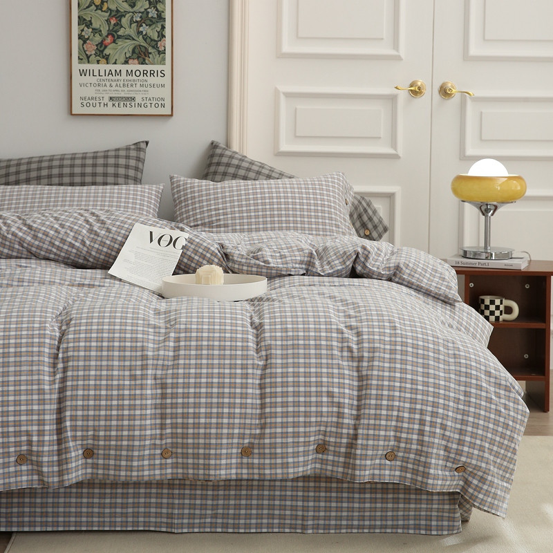 榻尚 经典田园格子全棉色织水洗棉四件套 沐色(黄灰)