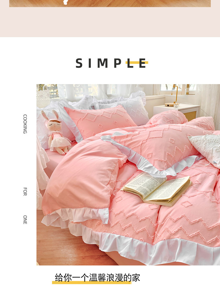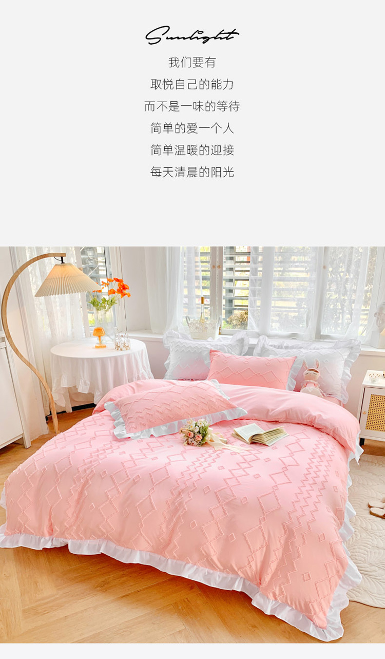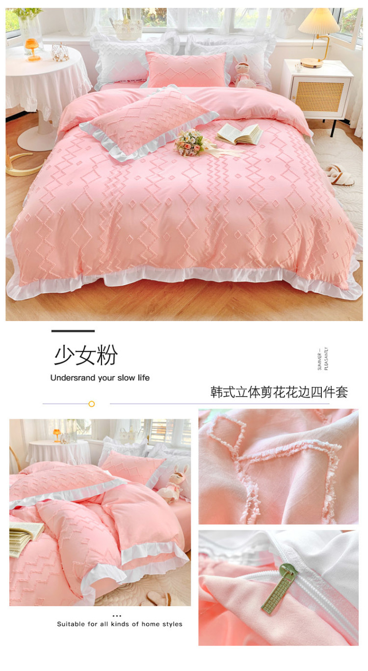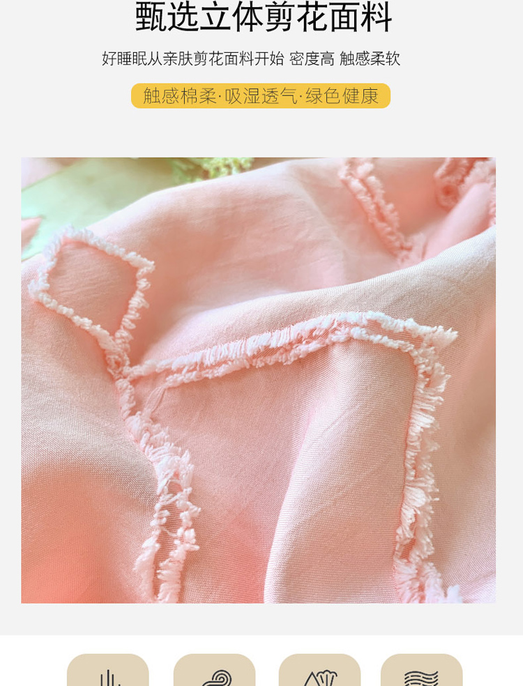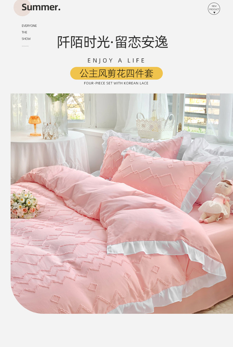 商品名称:雨帆家纺 2022新款立体剪花公主风四件套 少女粉