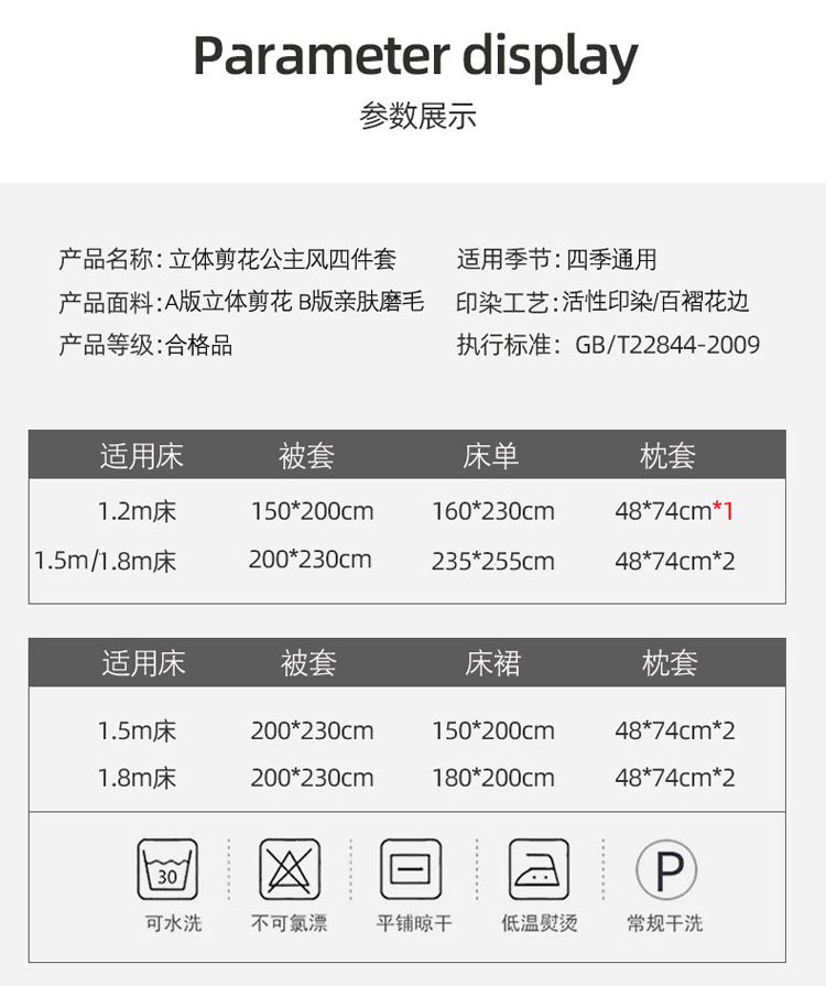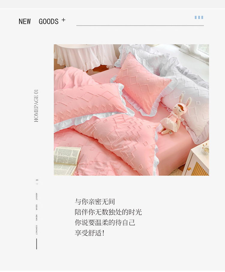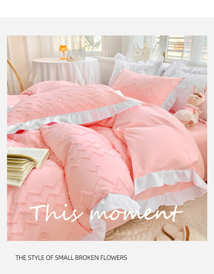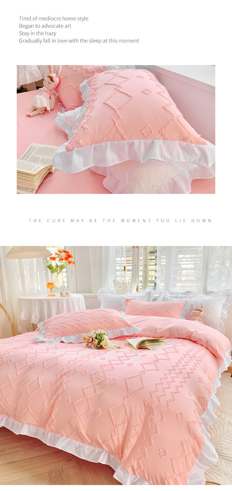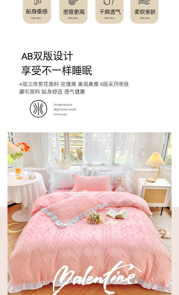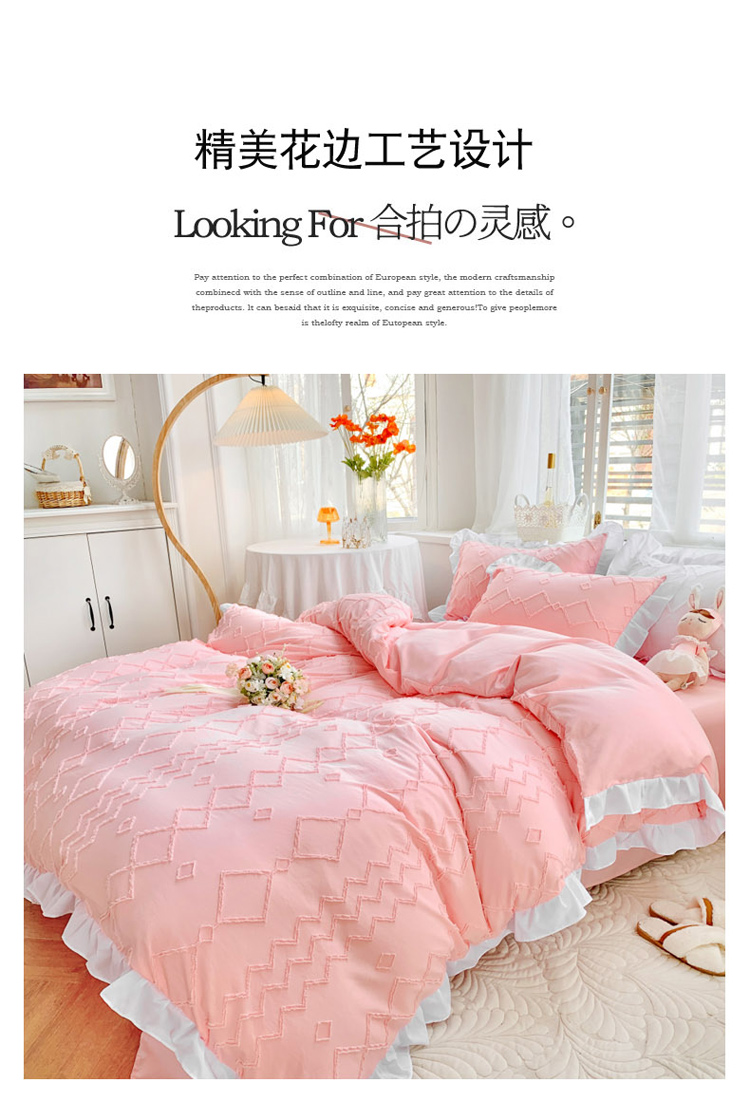 商品名称:雨帆家纺 2022新款立体剪花公主风四件套 少女粉