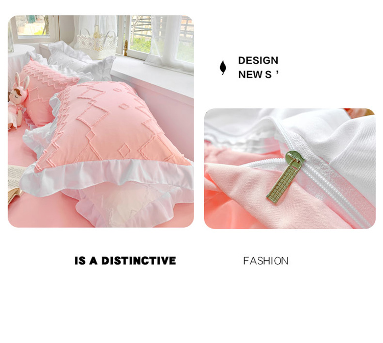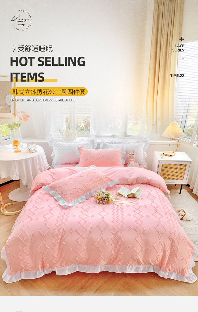 雨帆家纺 2022新款立体剪花公主风四件套 少女粉