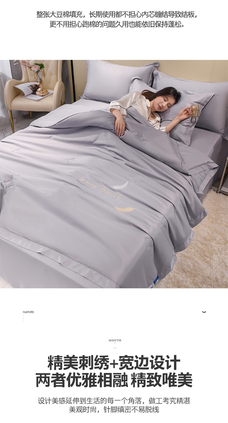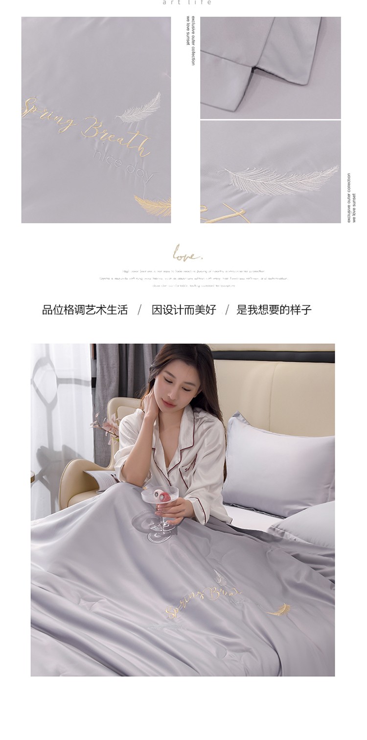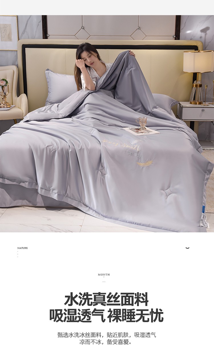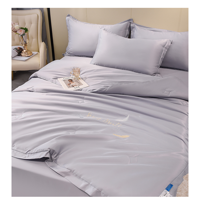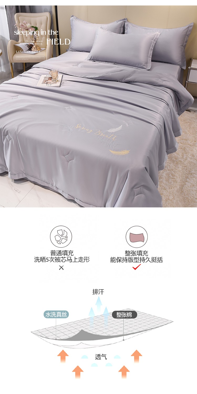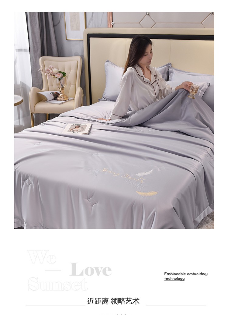 商品名称:塔塔 2025轻奢冰雪丝包边羽毛刺绣大豆夏被 包边款-冰月灰