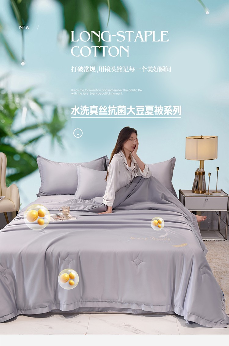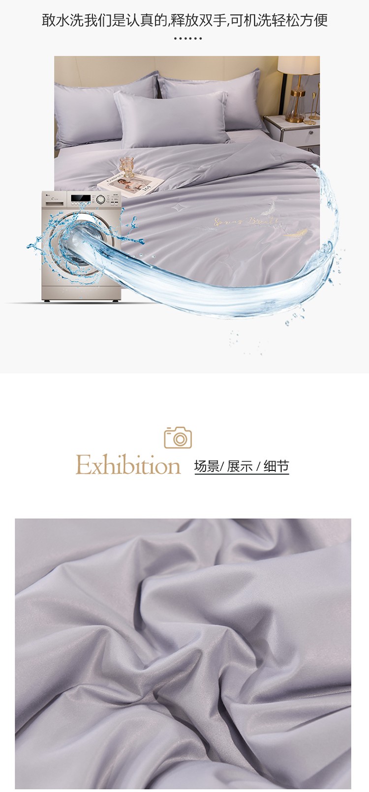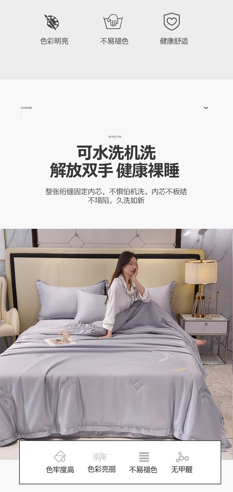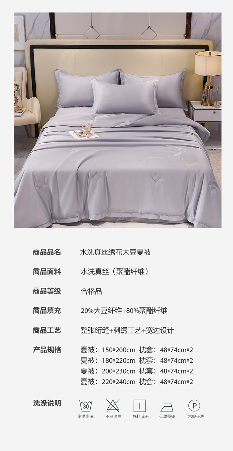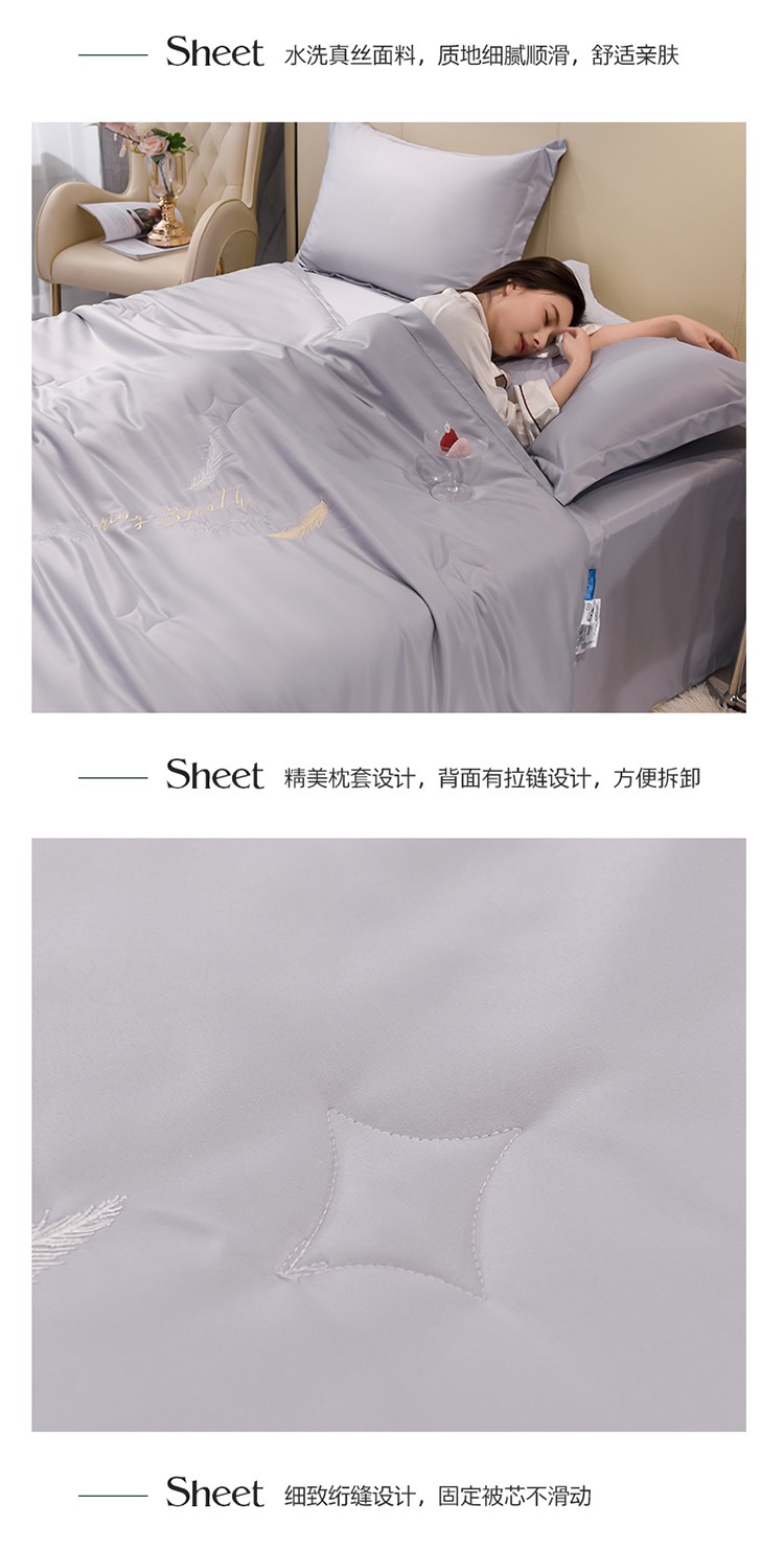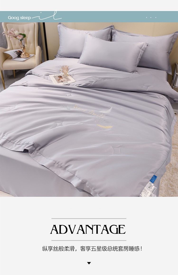 商品名称:塔塔 2025轻奢冰雪丝包边羽毛刺绣大豆夏被 包边款-冰月灰