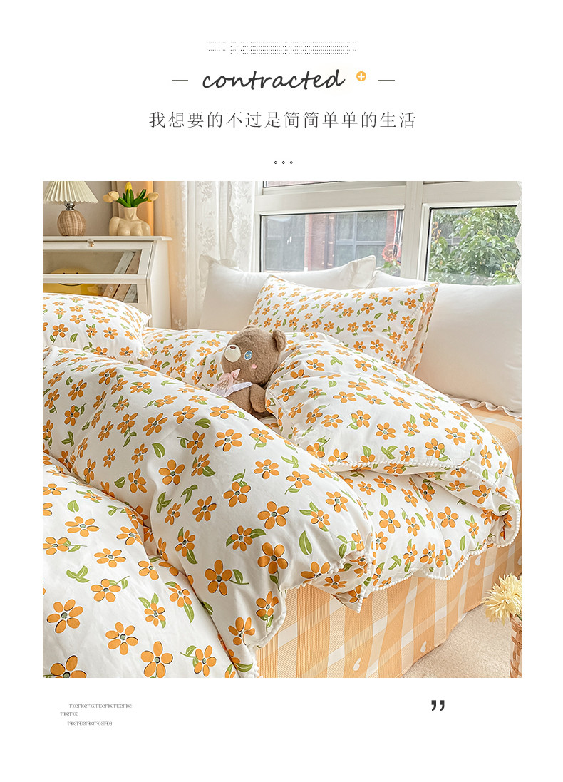 捌月 2024新款全棉ins小球球款四件套 小清新