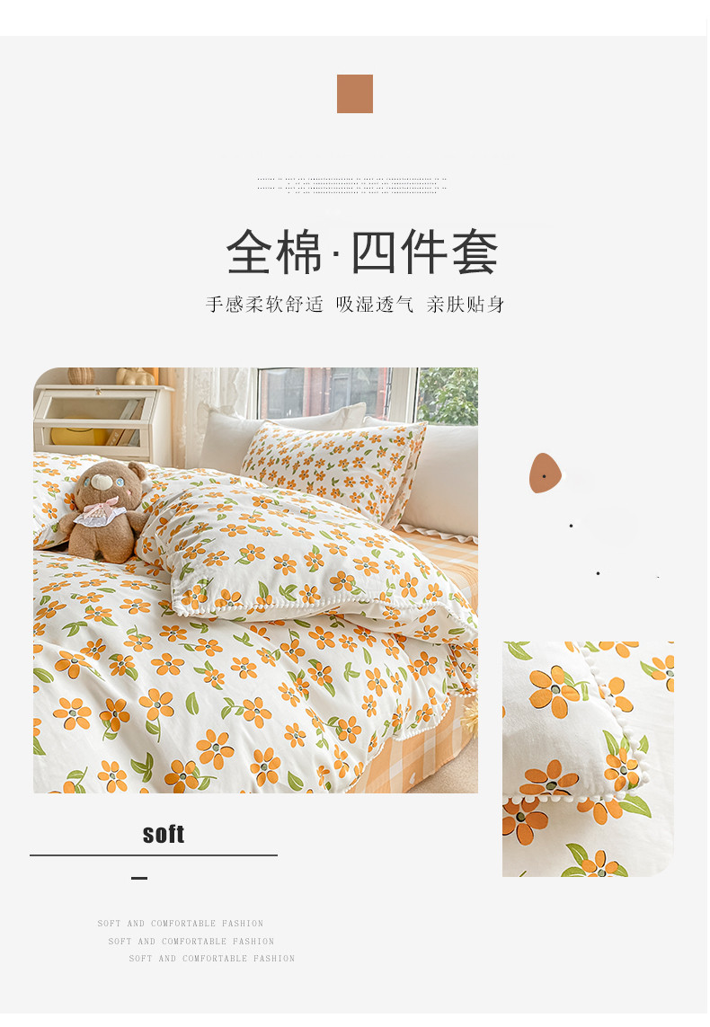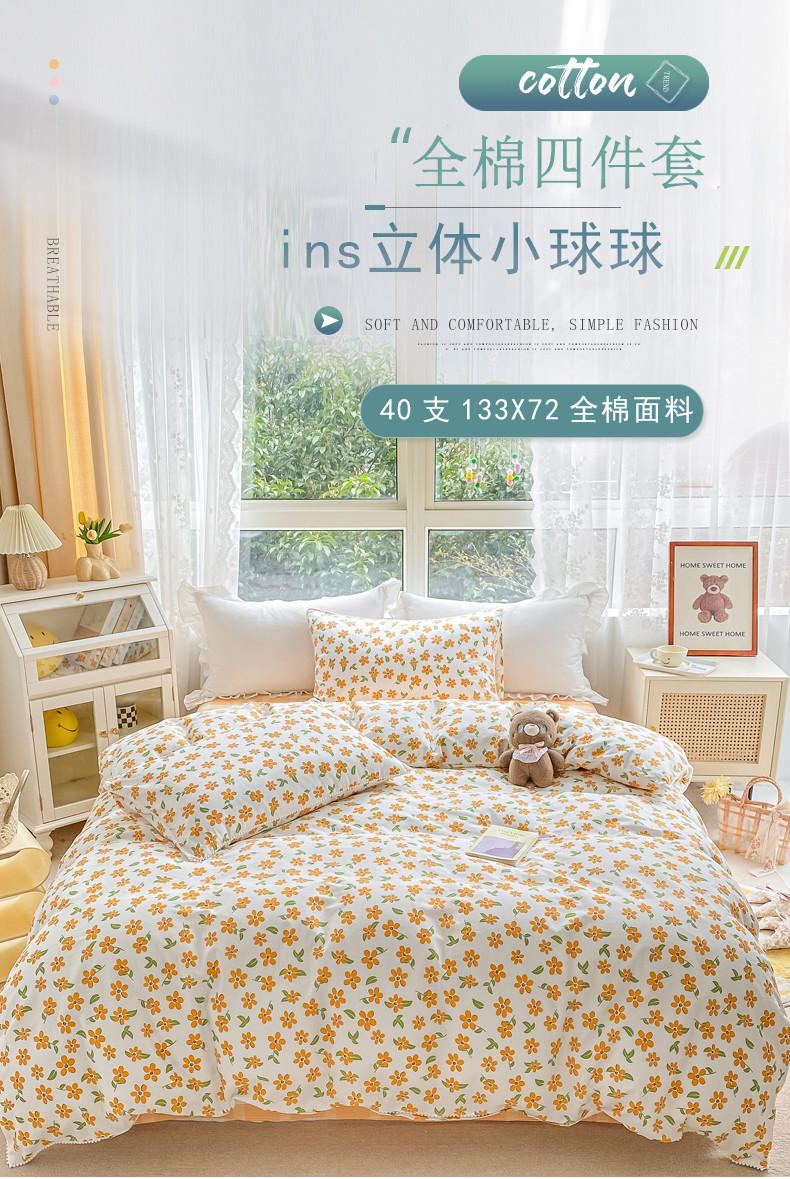 商品名称:捌月 2024新款全棉ins小球球款四件套 小清新