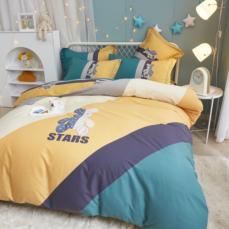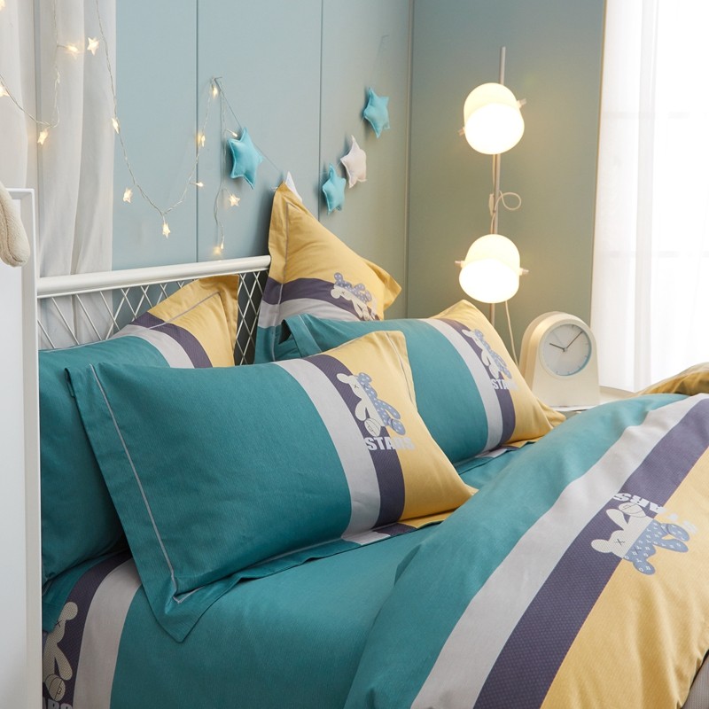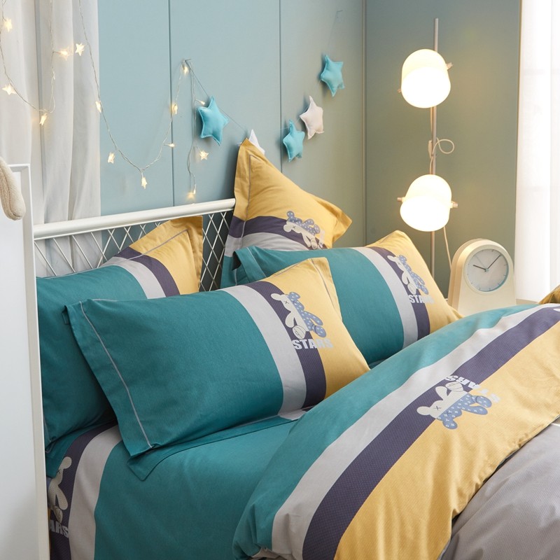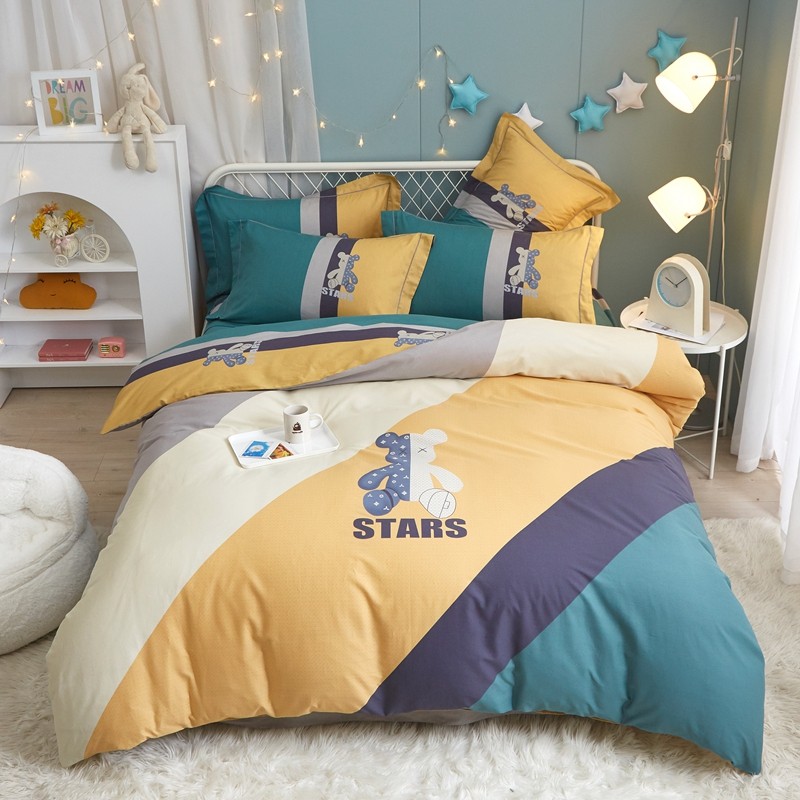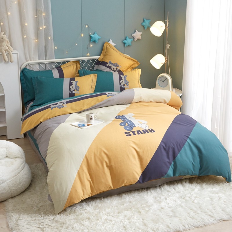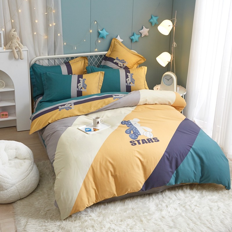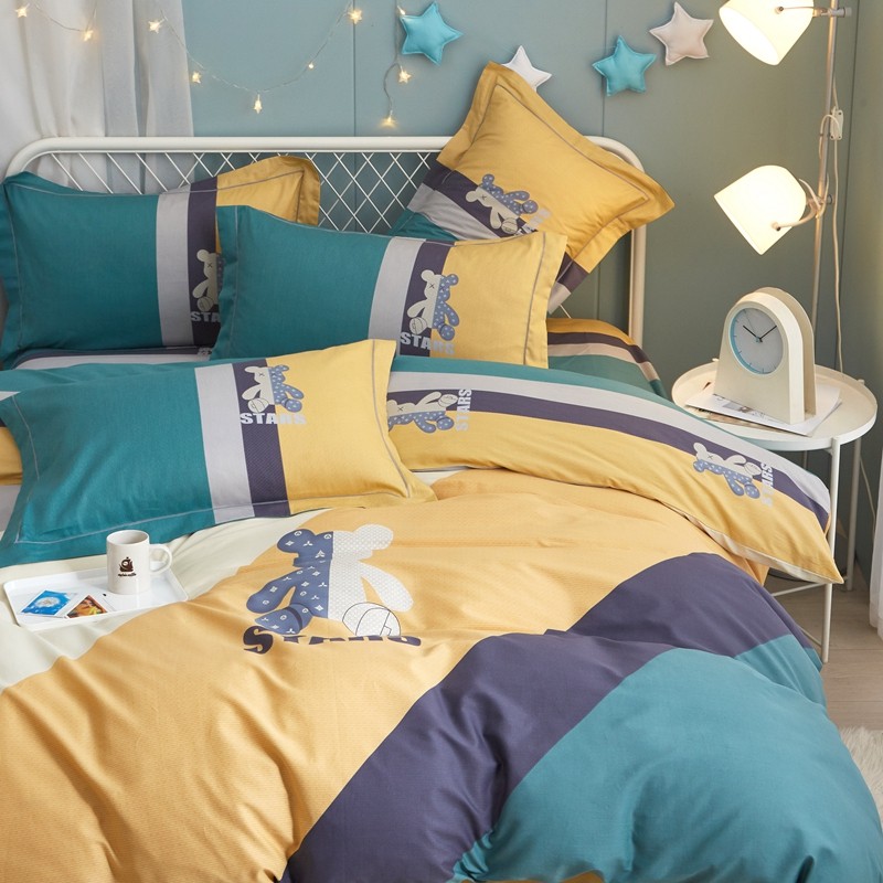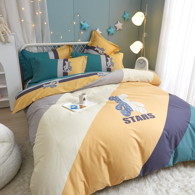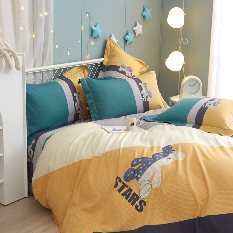 (总)惠居家 2023新款全棉磨毛四件套-小熊,小熊蓝色,小熊艾玛桔,小熊豆沙,小熊高级灰