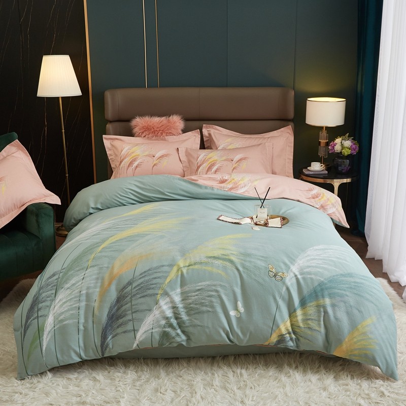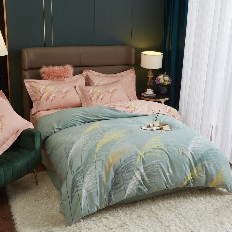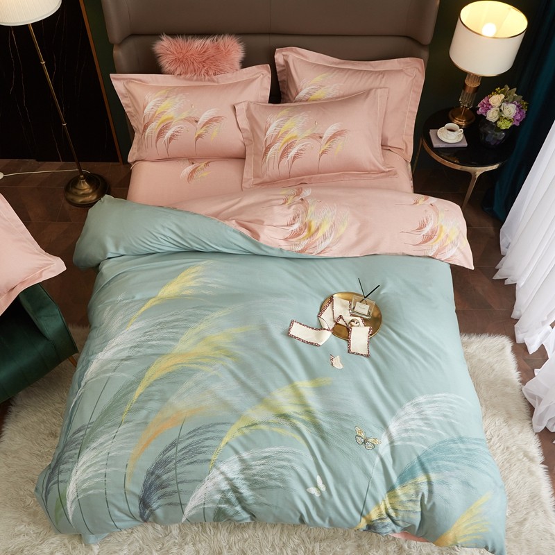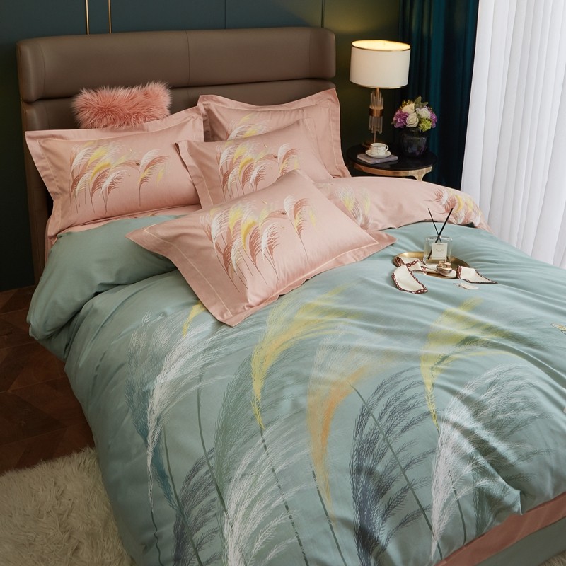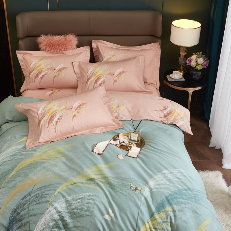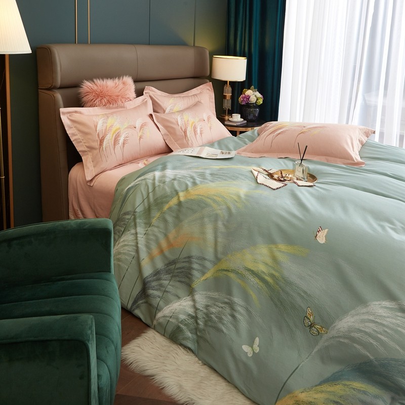 (总)惠居家 2023新款 13376全棉刺绣四件套 兰亭系列,牛果绿,豆沙,高级灰,桔色,森林绿,天空蓝,温馨紫