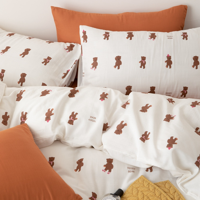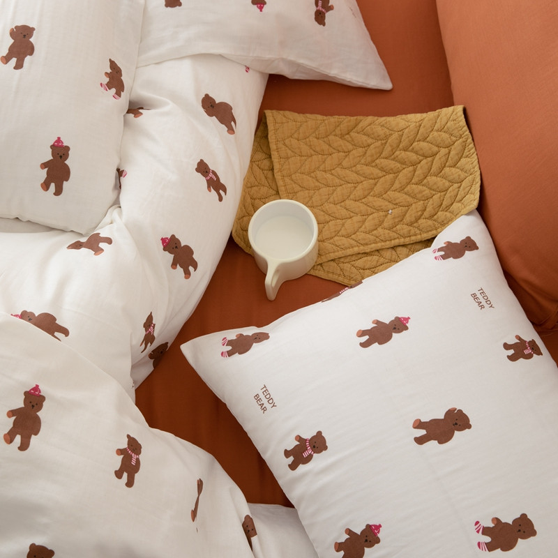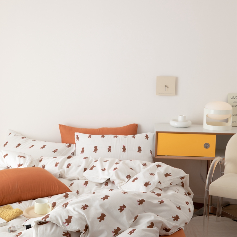 当前位置: 91家纺网 > 商品网购 > 床品套件 > 四件套 > 全棉普通四件套 > 8小时家纺 2022新款全棉双层纱四件套 围巾熊