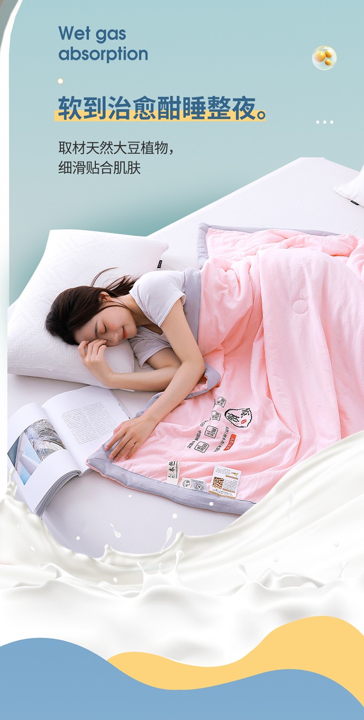 (总)梦镜 2025新款A类原棉大豆抗菌夏凉被,豆沙,灰,蓝,米白,玉
