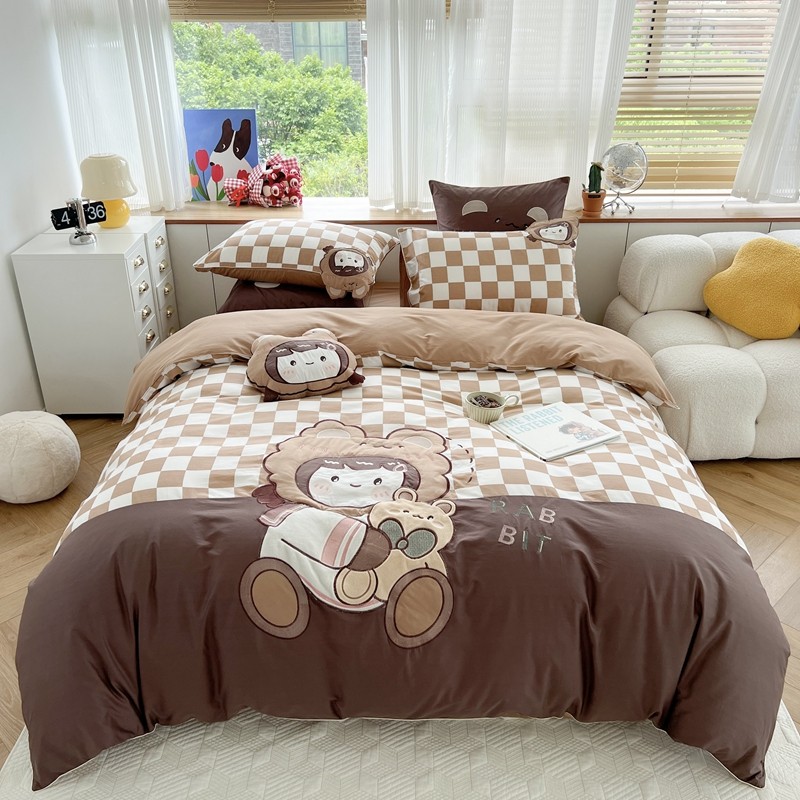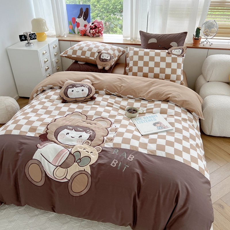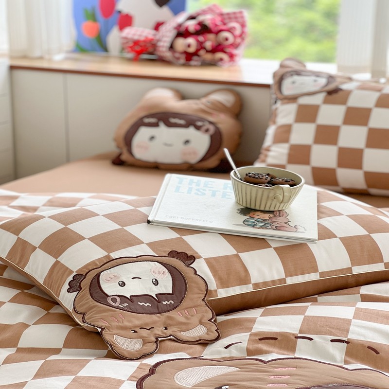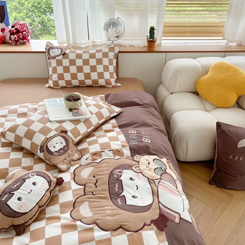 柚子 2022新款纯棉工艺刺绣四件套(送同款图上抱枕) 格子熊