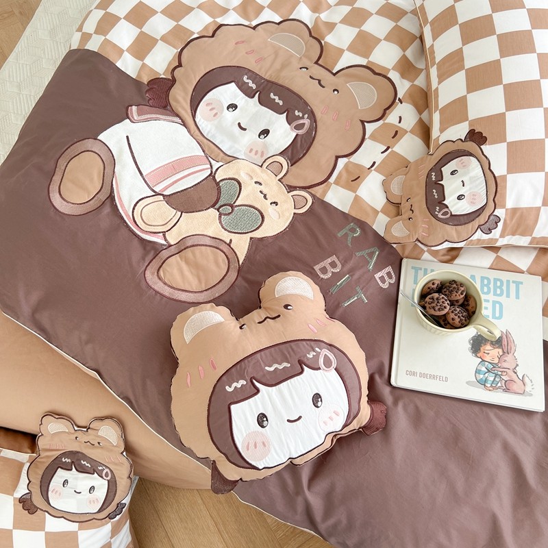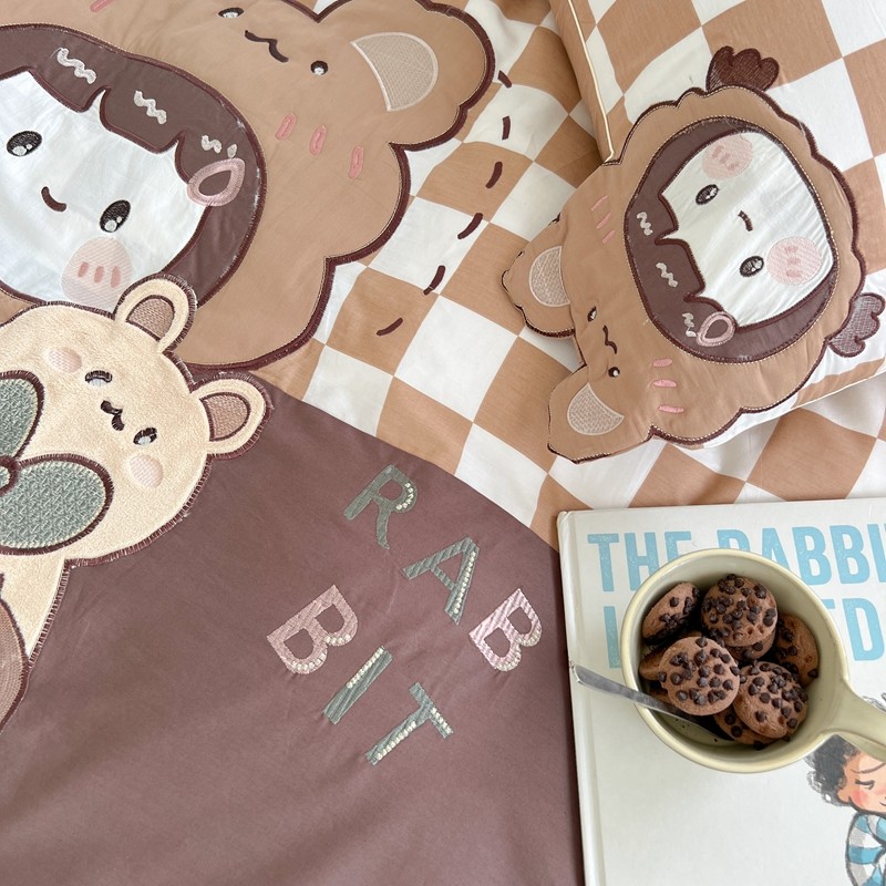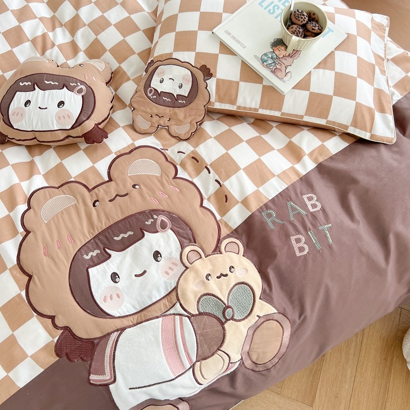(总)柚子YOUTH 2025新款全棉双层纱贴布绣四件套,棒球熊猫,贝雷帽,冰淇淋小熊,格子玩偶,碎花小兔,小黑猫