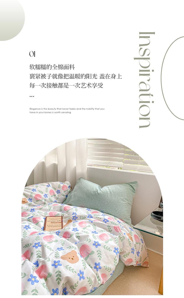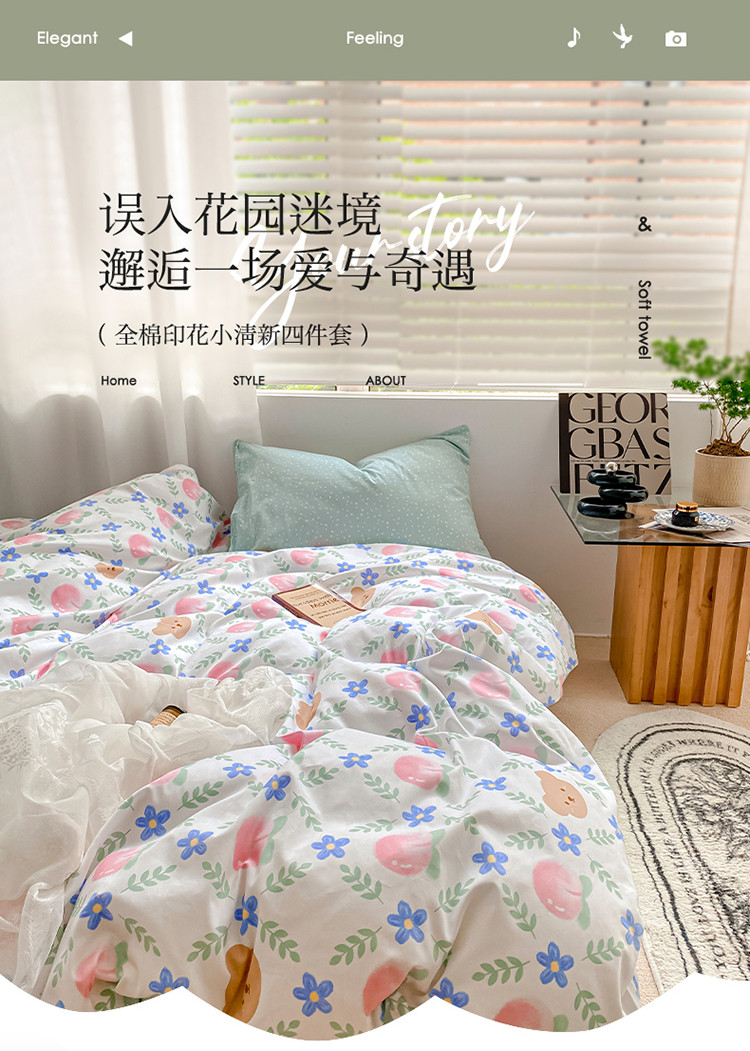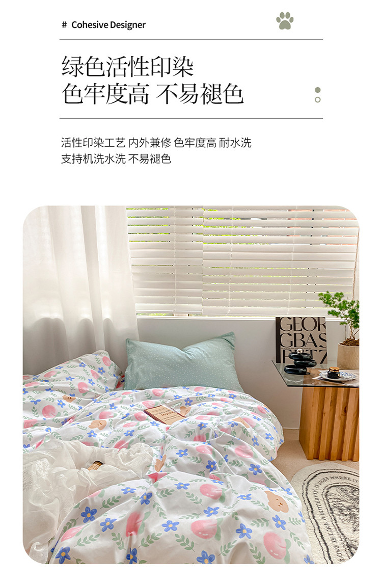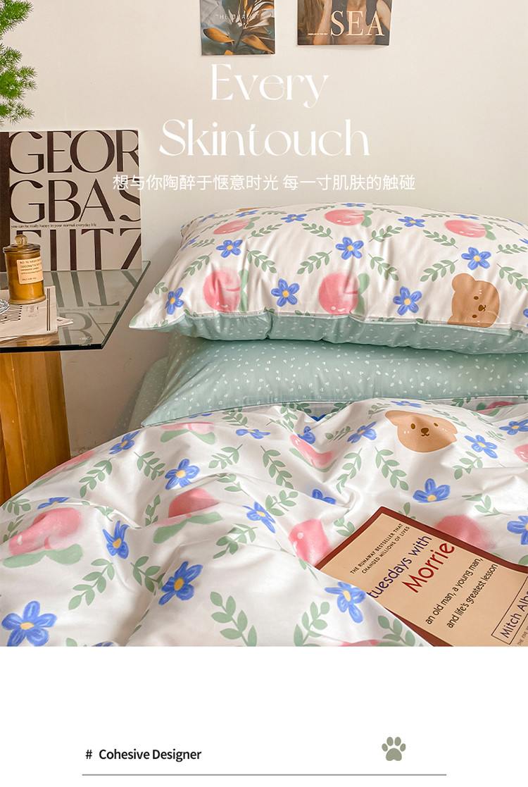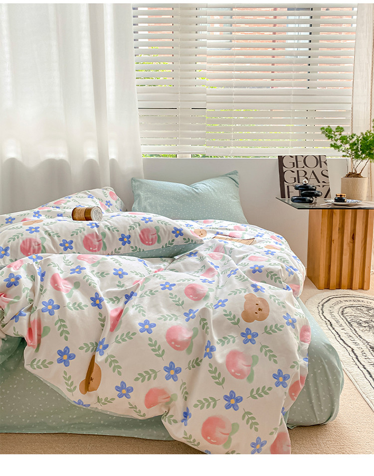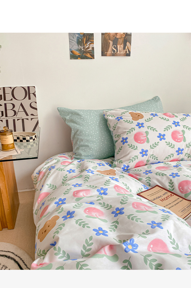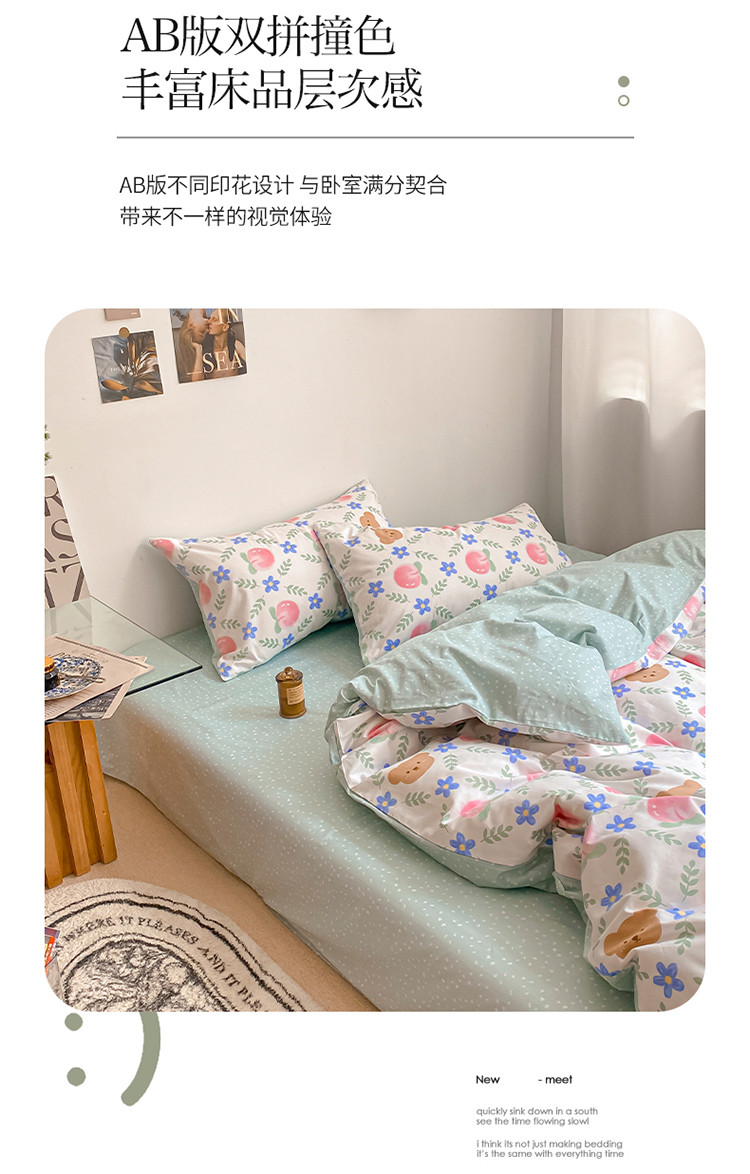 雅居纺 2022新款全棉13070印花小清新四件套 桃桃熊