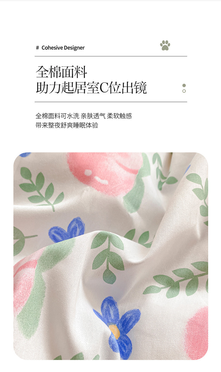 (总)雅居纺家纺 2022新款13070全棉印花四件套,波纹,多彩,简笔画,莓关系,奶油绿豹纹,倾心,数字