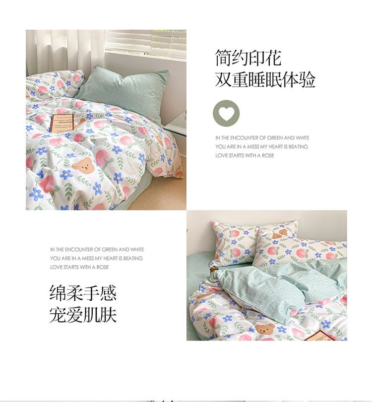 商品名称:雅居纺 2022新款全棉13070印花小清新四件套 桃桃熊