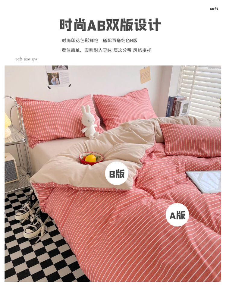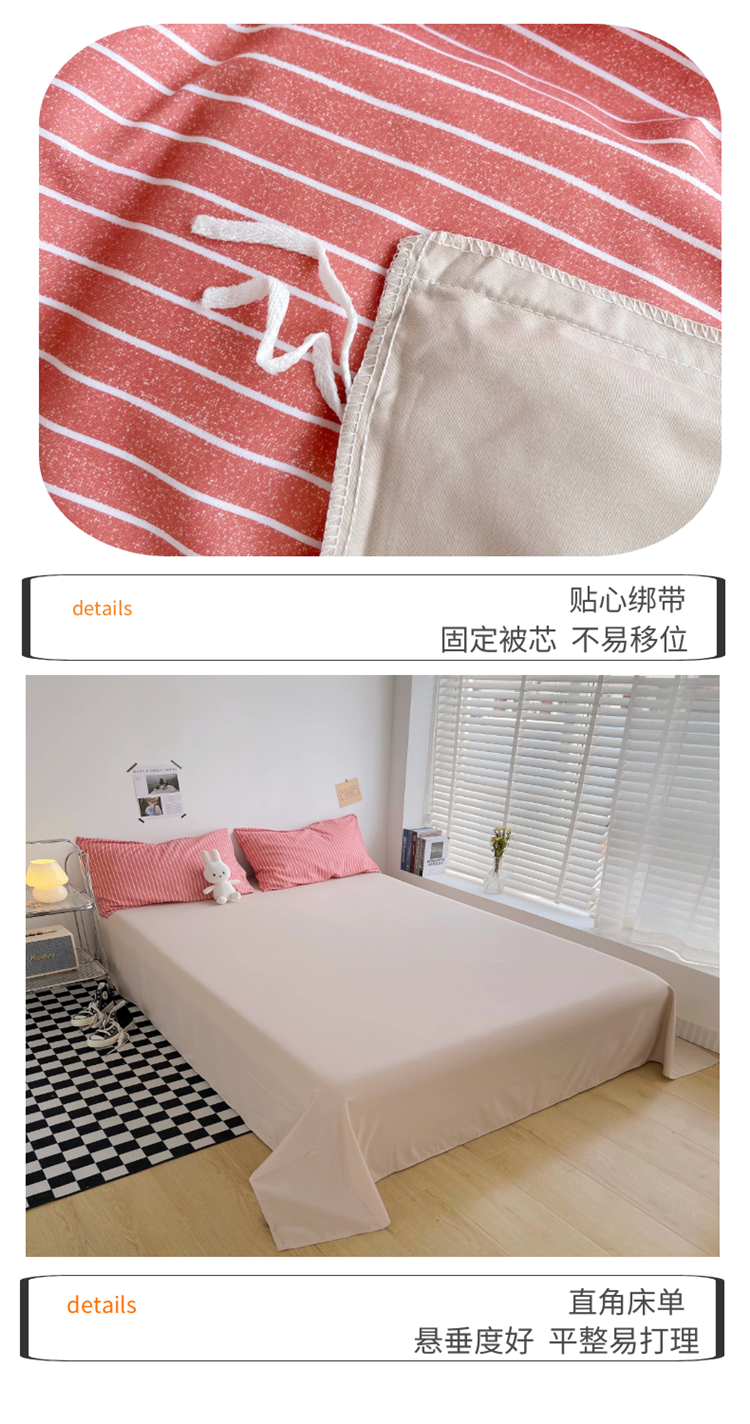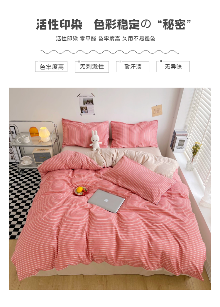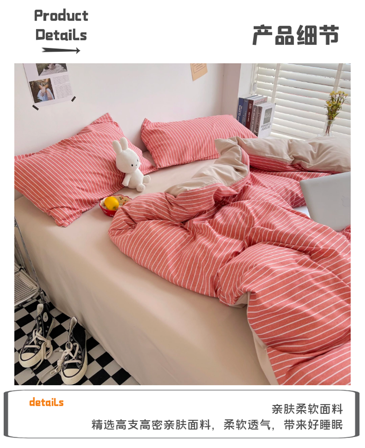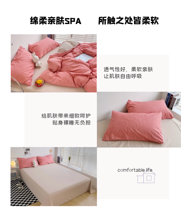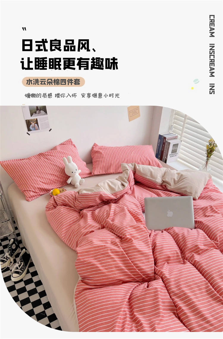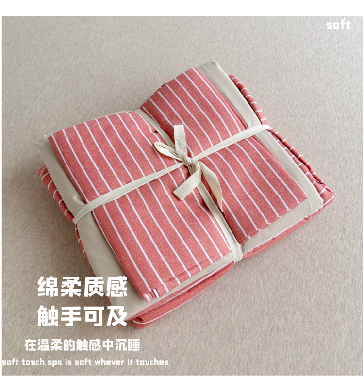 当前位置: 91家纺网 > 商品网购 > 床品套件 > 四件套 > 普通磨毛四件套 > 曼璐家纺 105克加厚水洗棉日系无印风纯色被套床单床笠三件套豆沙条