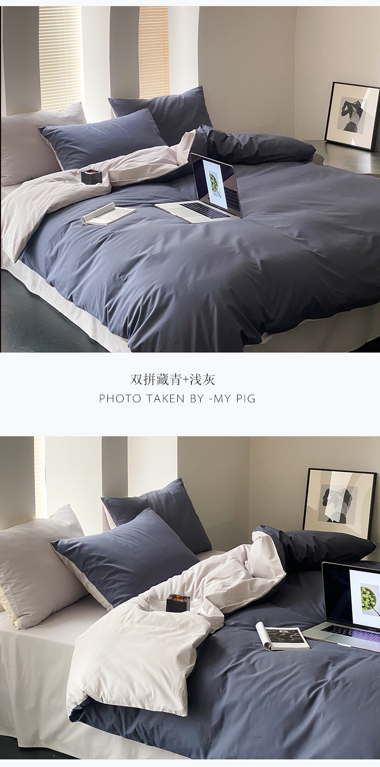 北欧风ins纯棉水洗棉床四件套全棉简约被套床单上三件套床笠,白色+藏青,藏青+浅蓝,鹅黄+螺旋藻绿,鹅黄+牛油果,螺旋藻绿+鹅黄,千夏紫+水貂灰,千夏紫+薇薇紫,薇薇紫+浅灰,浅蓝+鹅黄,浅蓝+白色,浅蓝+藏青