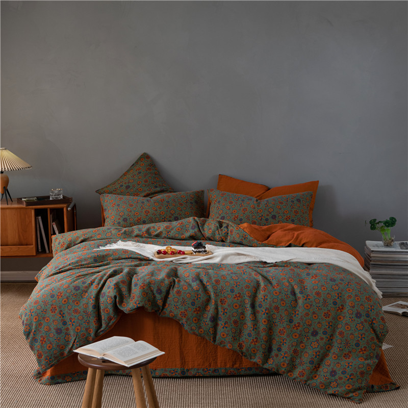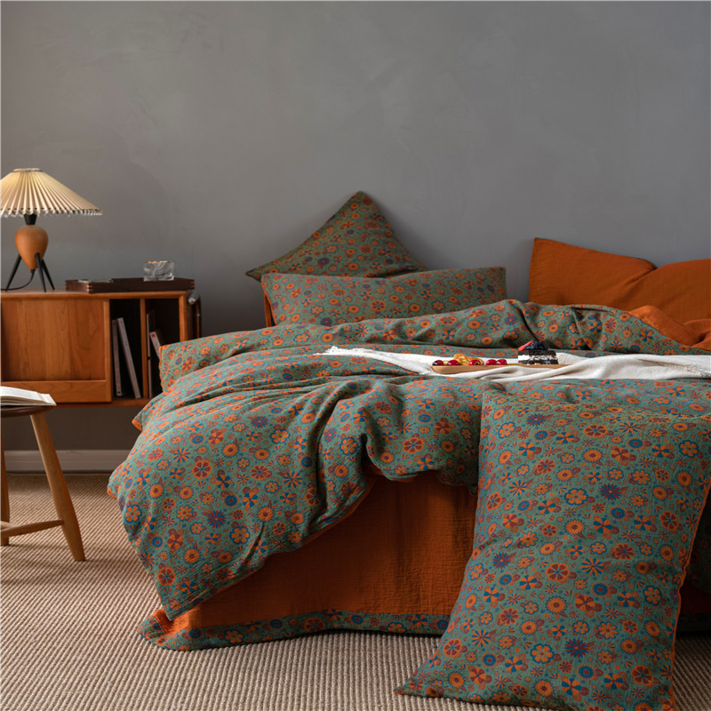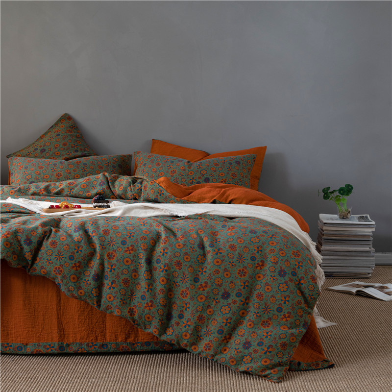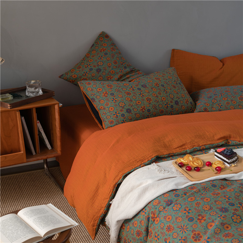 商品名称:馨蕊2022新款轻复古法式系列双层纱提花四件套 蔷薇-复古橙