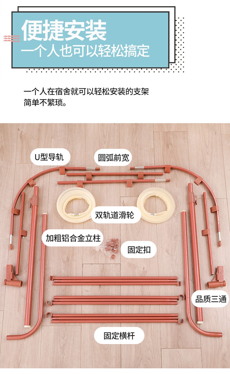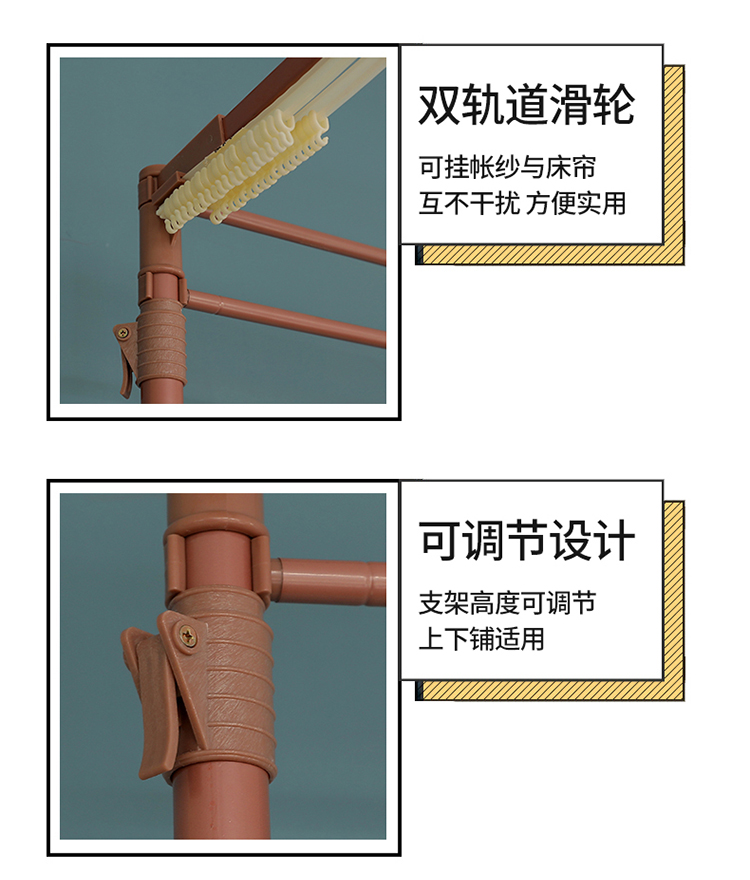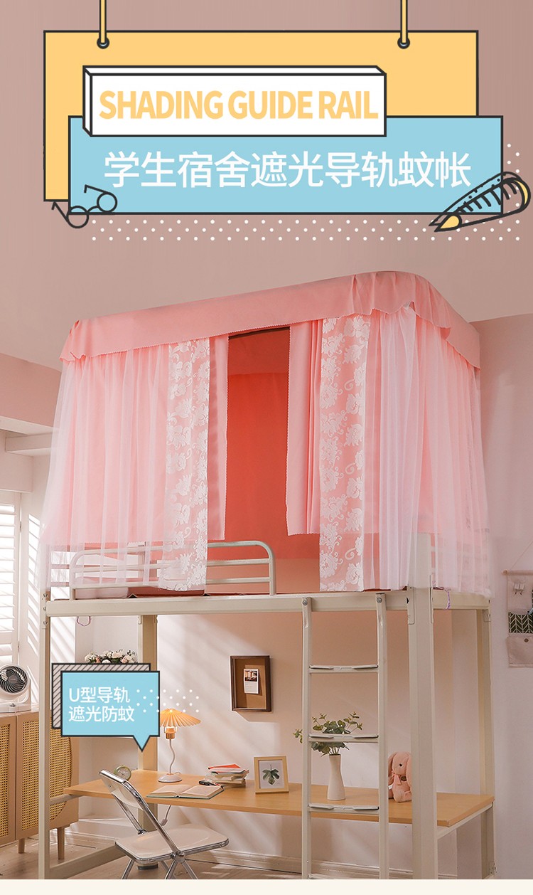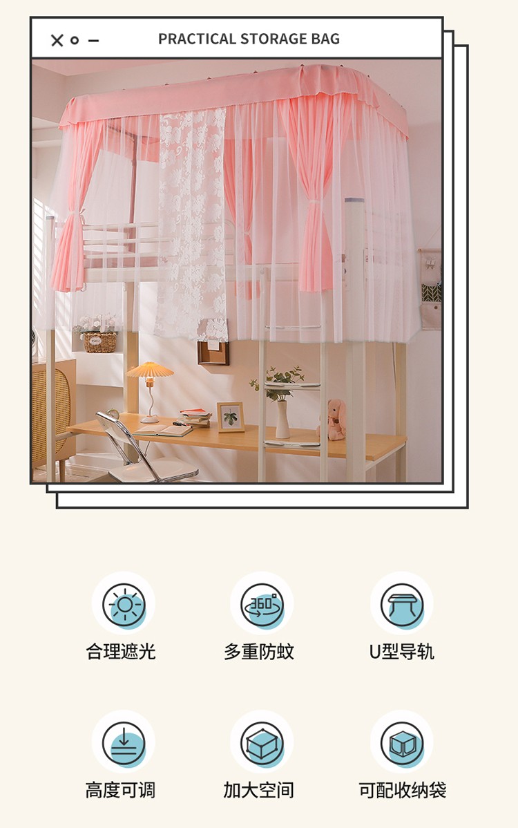 商品名称:飞轮海U型双轨道床帘学生蚊帐上下铺通用XD-1樱花粉送风扇杆
