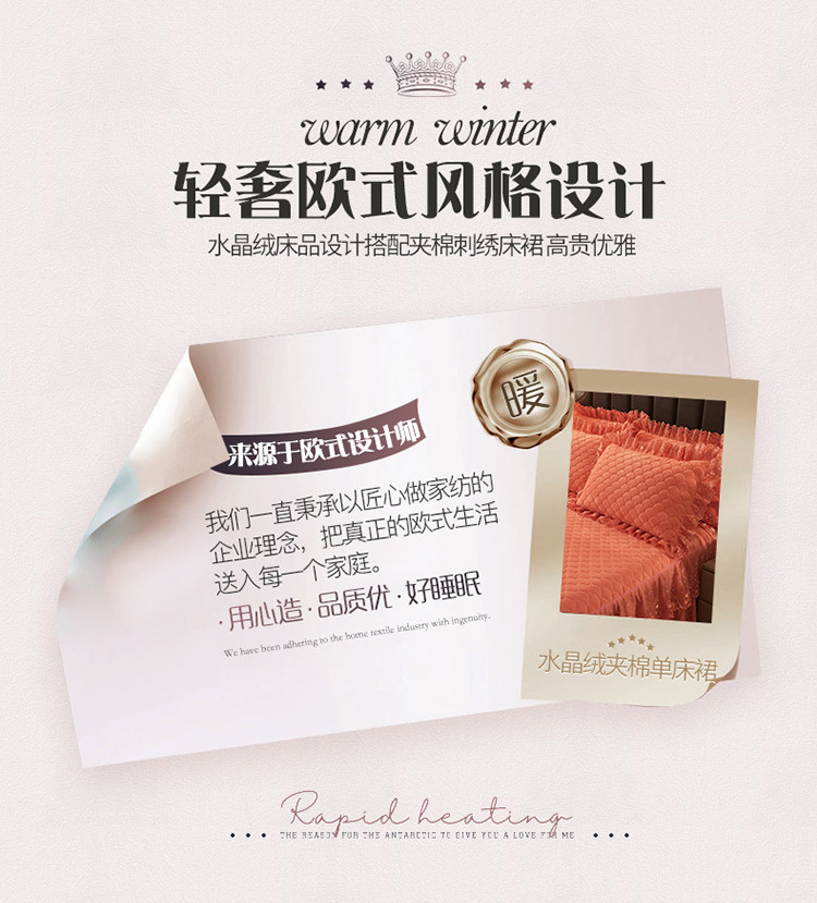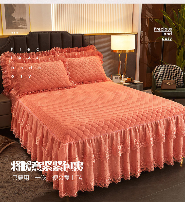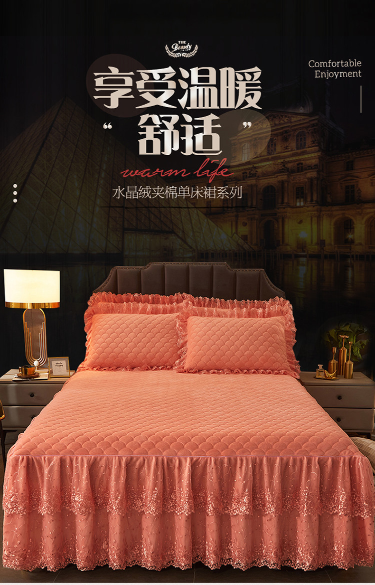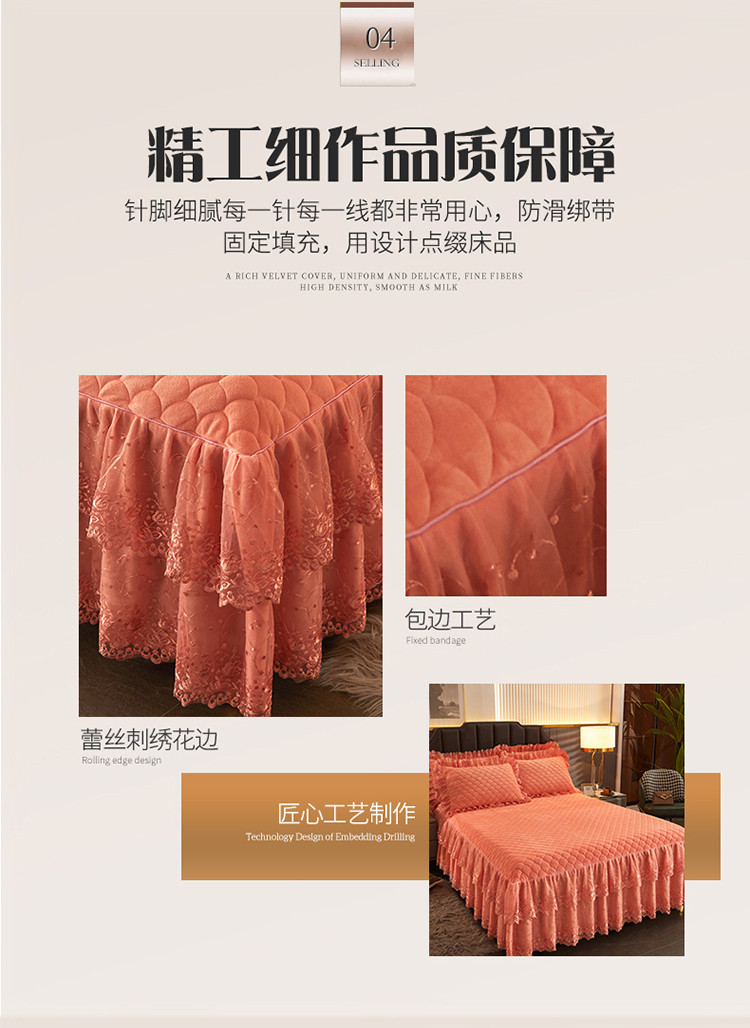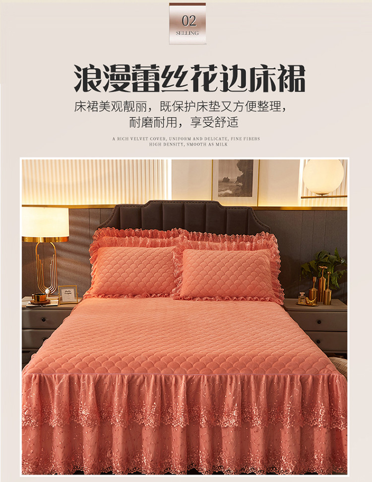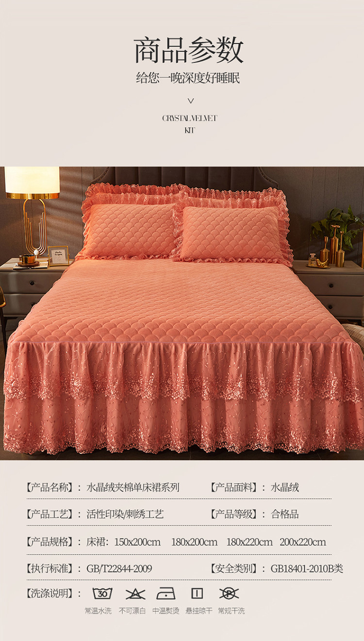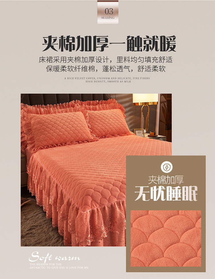 • 91家纺网 家纺一手货源 找家纺 恒爱 2022秋冬水晶绒翩翩花舞夹棉单床裙 桔色