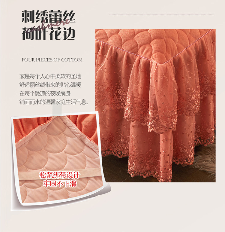 (总)恒爱家纺 2025新款牛奶绒贴布绣夹棉床裙四件套,豆沙红,浪漫紫,天空蓝,温馨粉,象牙白