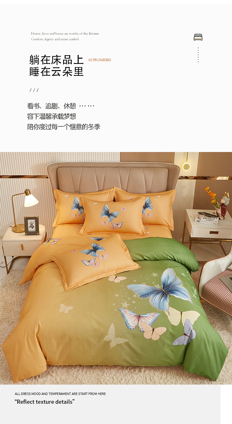 雲归梦 2022年新款加厚全棉大版四件套第二批-花卉 翩翩起舞-绿