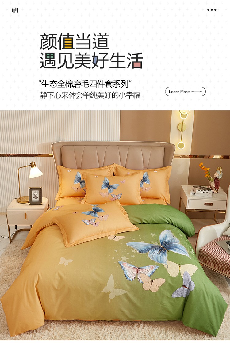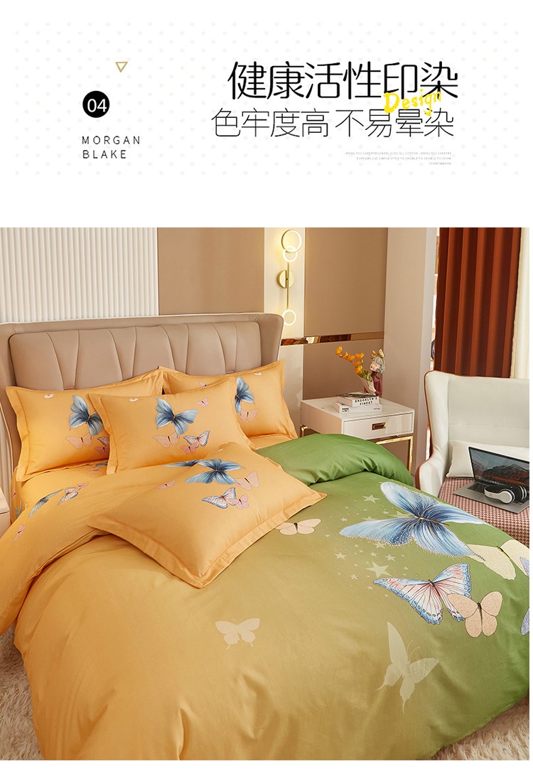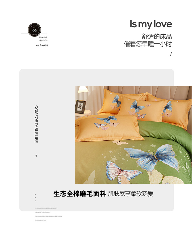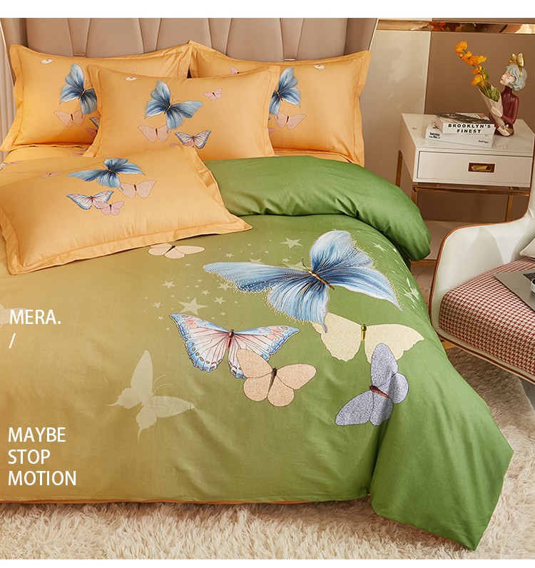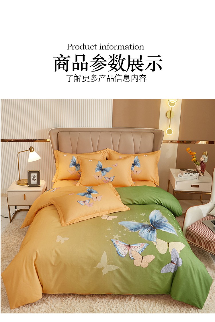 商品名称:雲归梦 2022年新款加厚全棉大版四件套第二批-花卉 翩翩起舞-绿