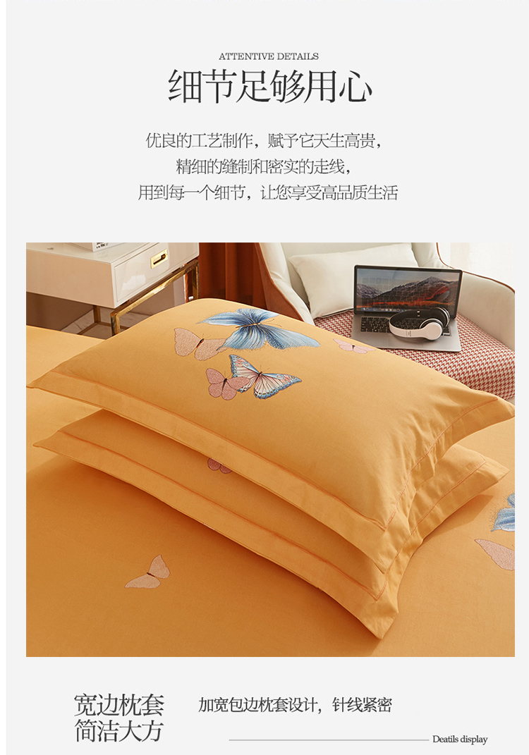 (总)雲归梦 2021新款全棉生态磨毛刺绣四件套,慕思-橙色,慕思-粉紫,慕思-灰,慕思-米黄,慕思-青绿,慕思-天蓝