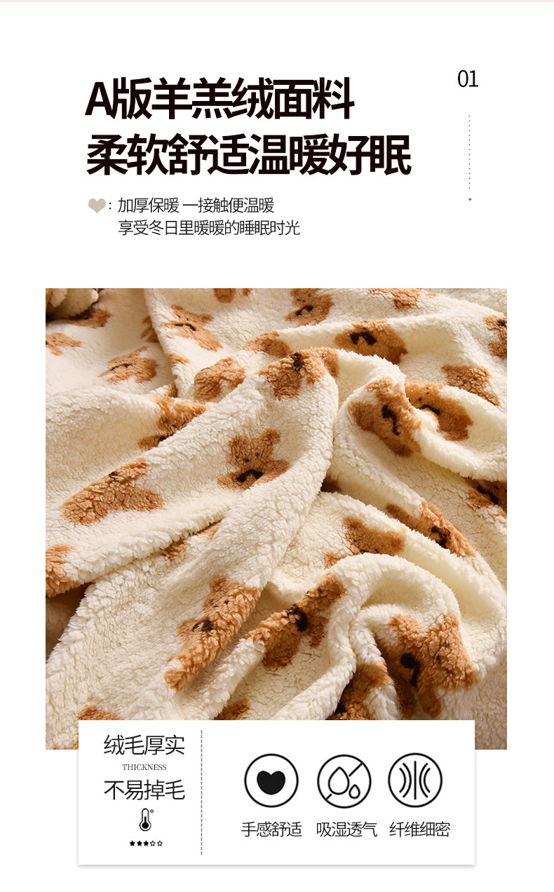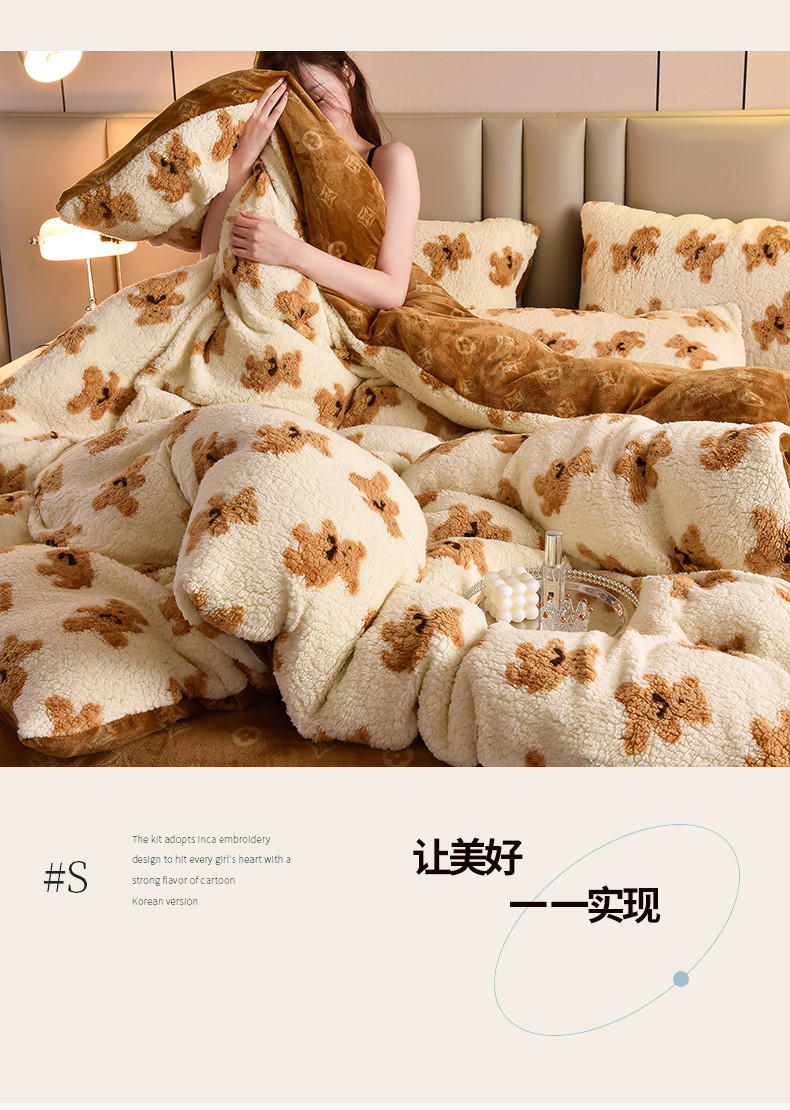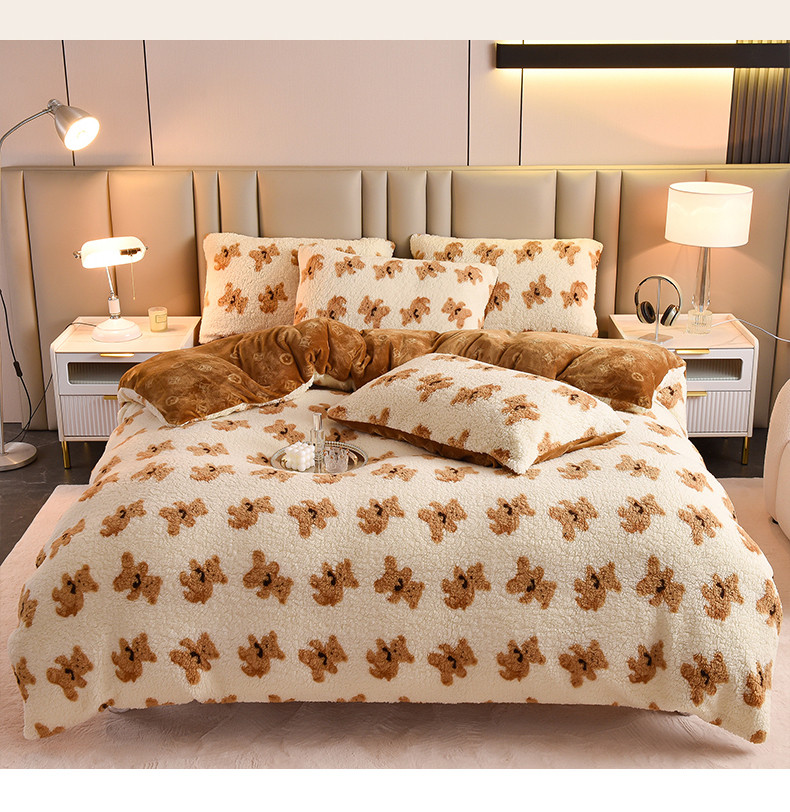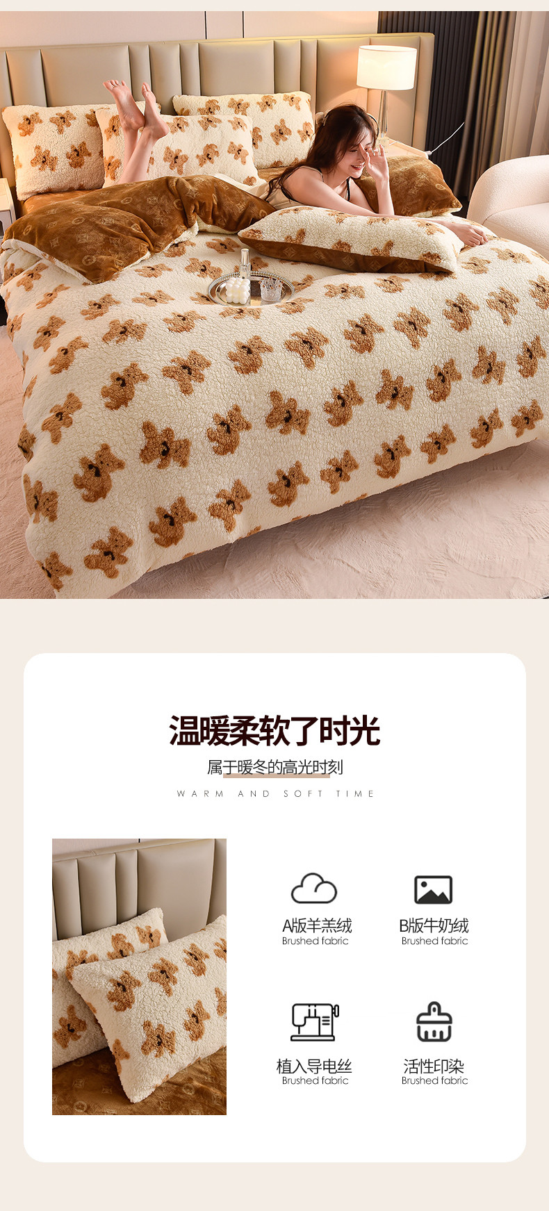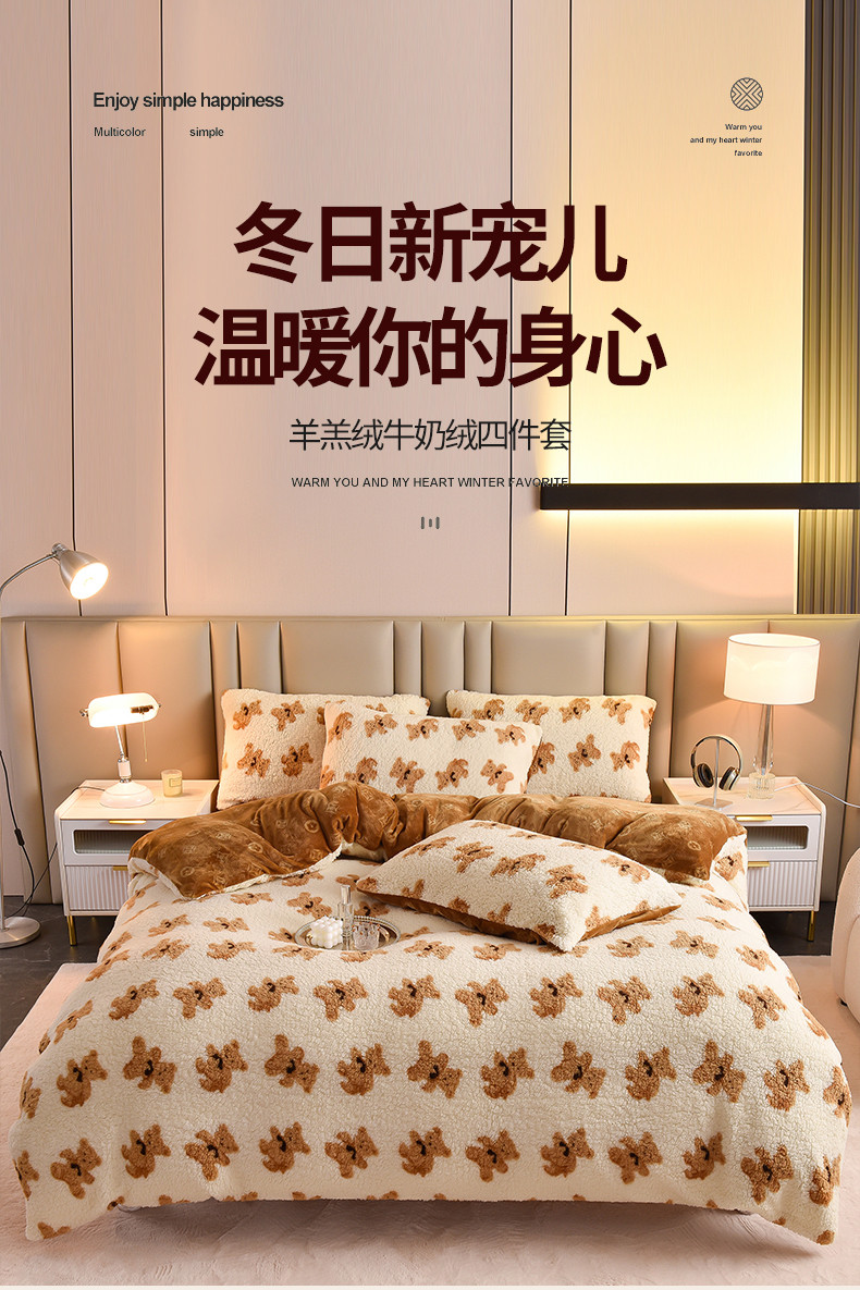 同田 2023新直播羊羔绒四件套牛奶绒法莱绒四件套 抱抱熊
