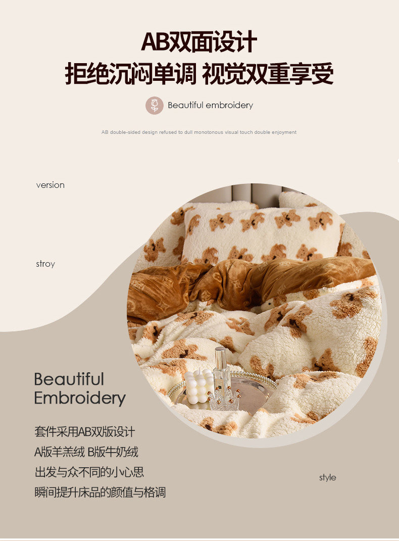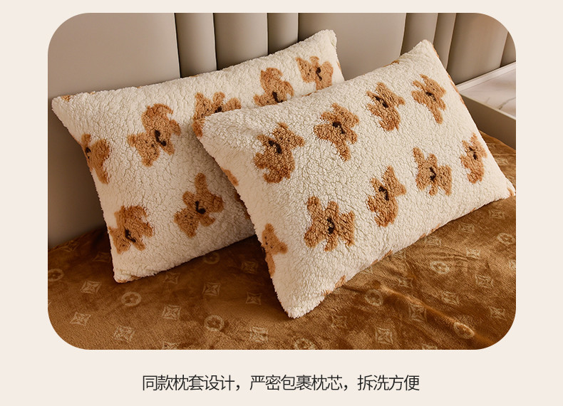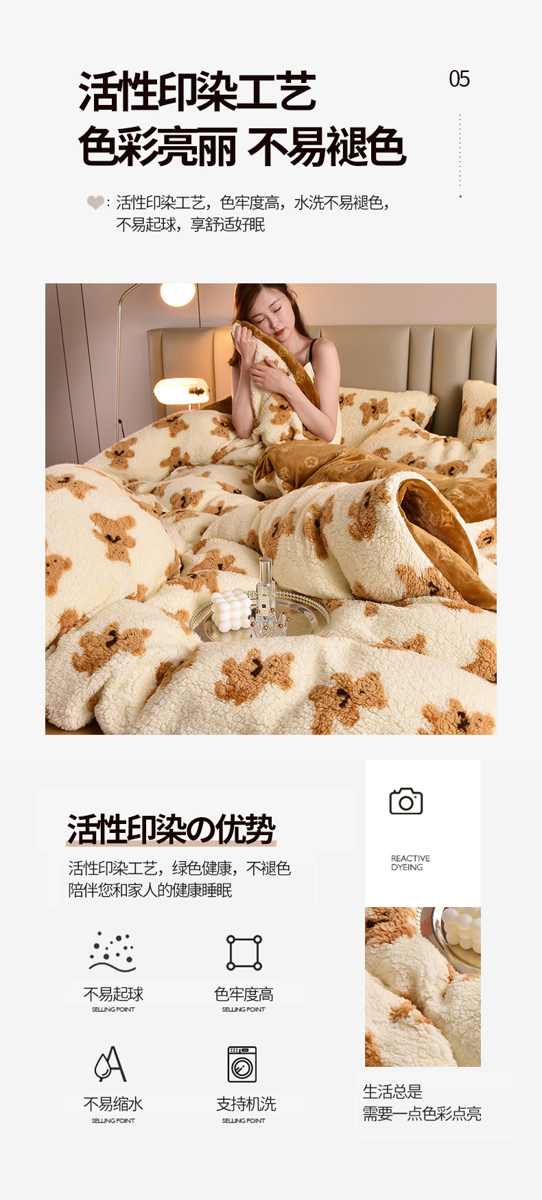 商品名称:同田 2023新直播羊羔绒四件套牛奶绒法莱绒四件套 抱抱熊