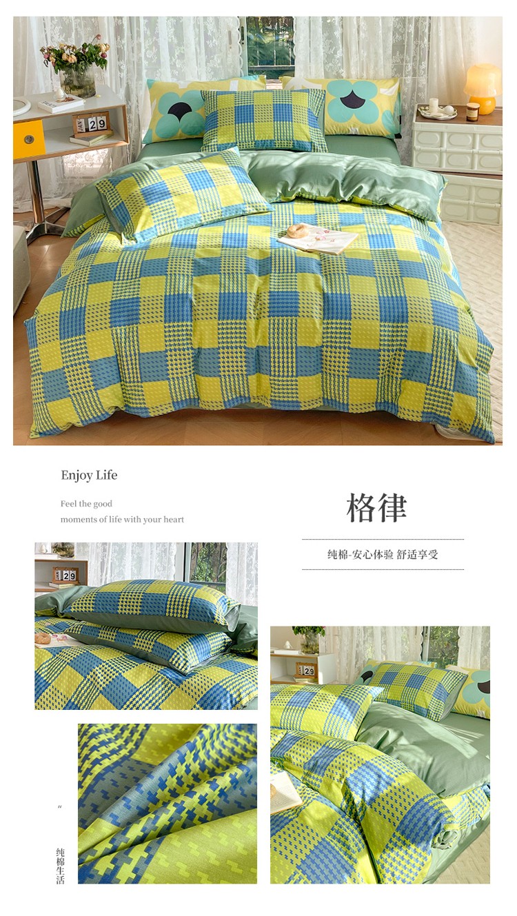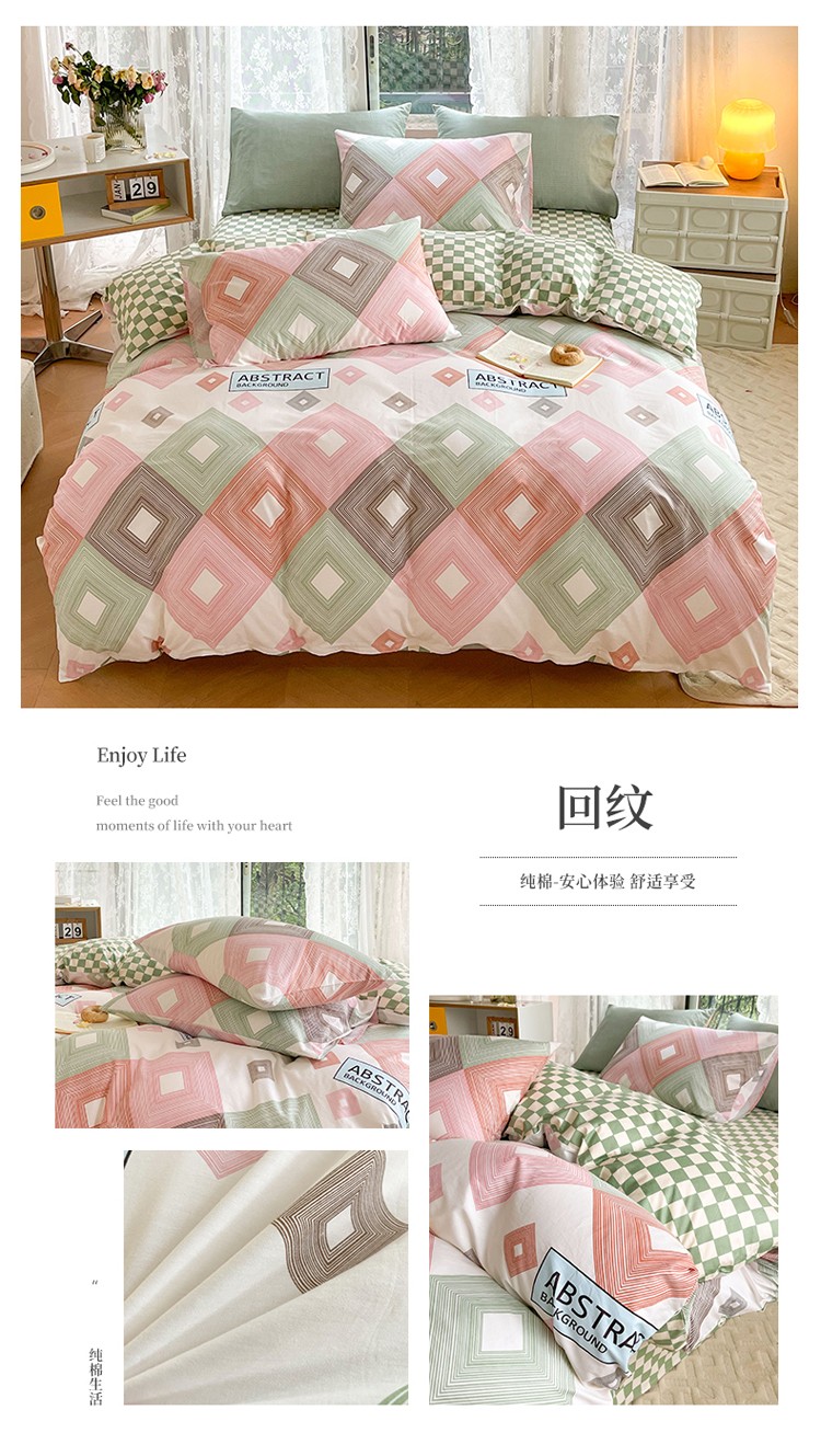 (总)感遇家纺 2025新款小清新甜系全棉四件套,百丽兔,波点小女孩,点点小狗,复古樱桃,格子草莓,格子樱桃,花间牧歌,灰条猫咪,奶绿,宁夏,森林小熊猫,甜心波点