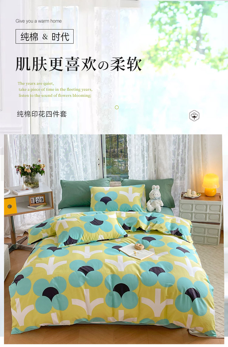 当前位置: 91家纺网 > 商品网购 > 床品套件 > 四件套 > 全棉普通四件套 > 感遇2022新款纯棉印花四件套 花开朵朵