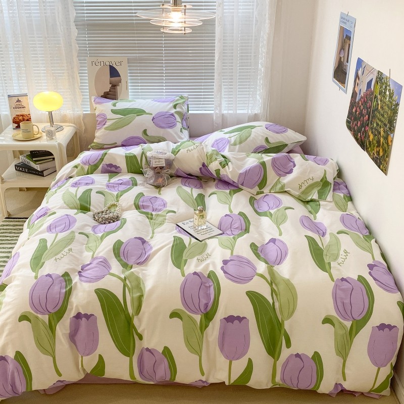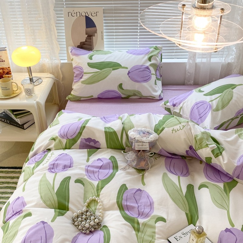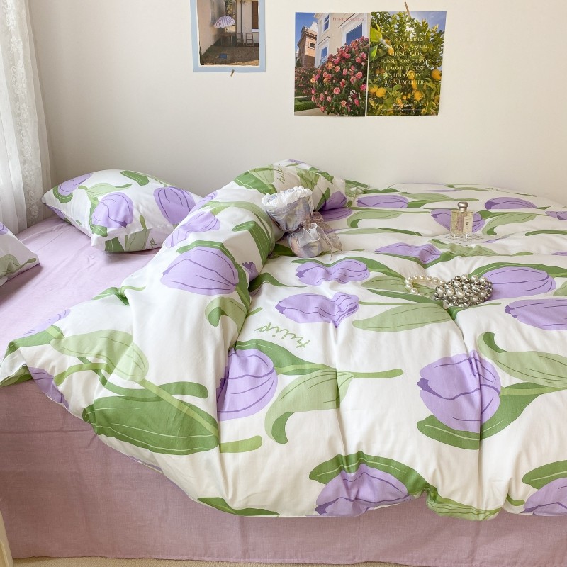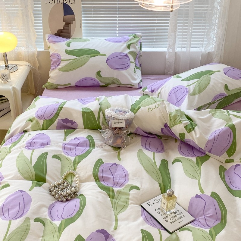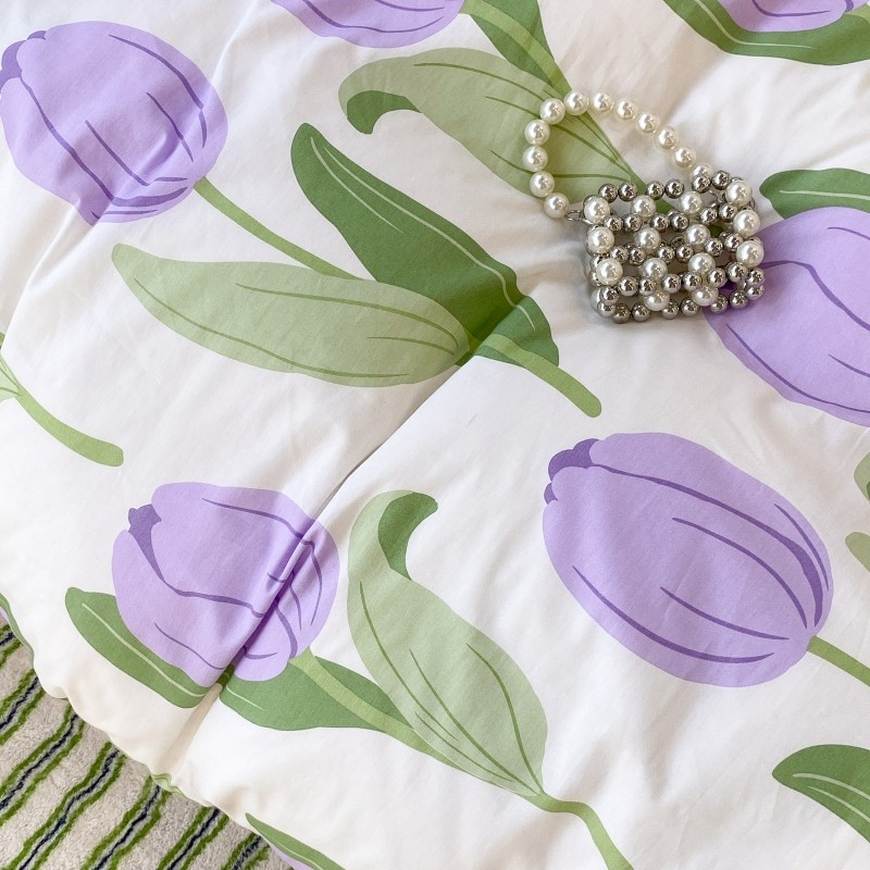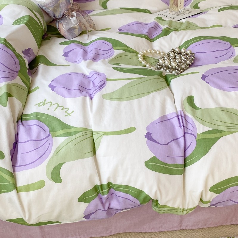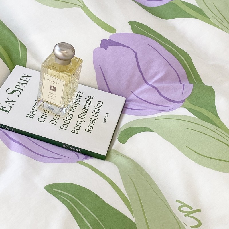 昔可家纺 2022新款法式田园花卉系列全棉四件套 紫郁金