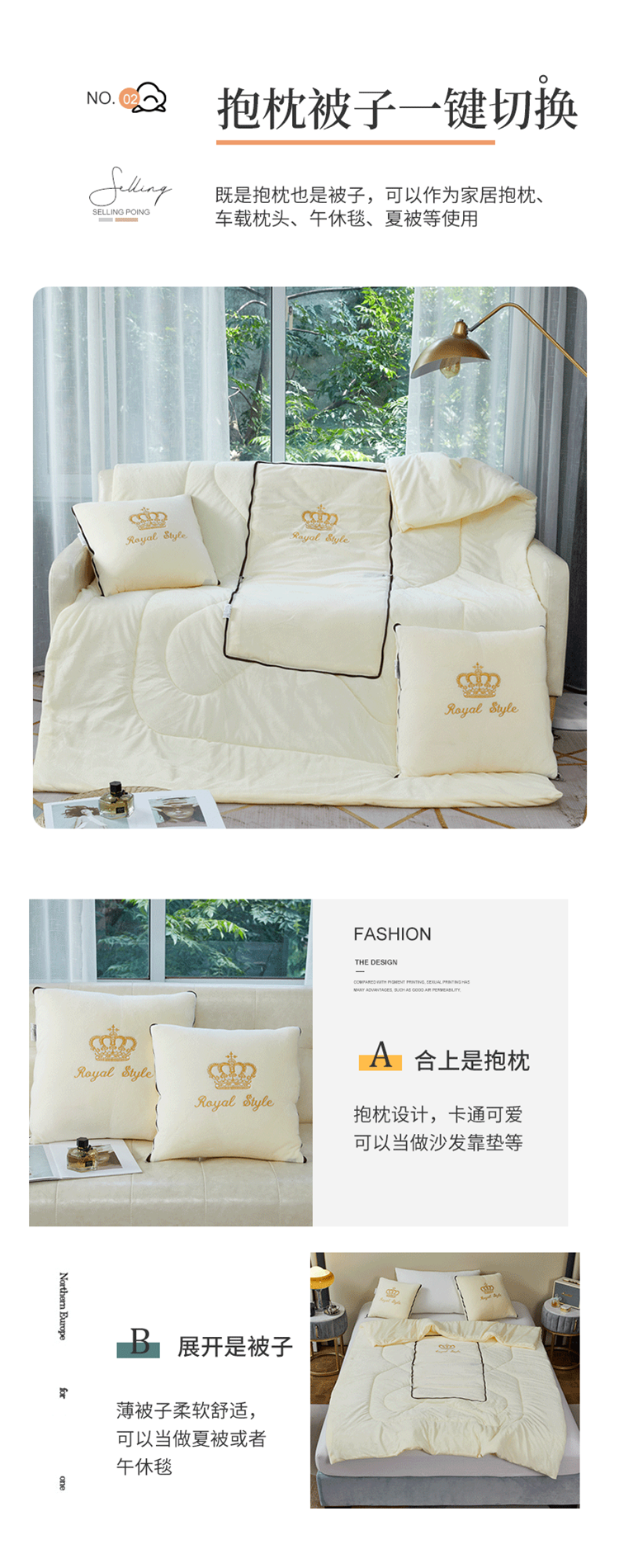 商品名称:(总)翰轩家居2022新款 水晶绒绣花抱枕被系列-皇冠