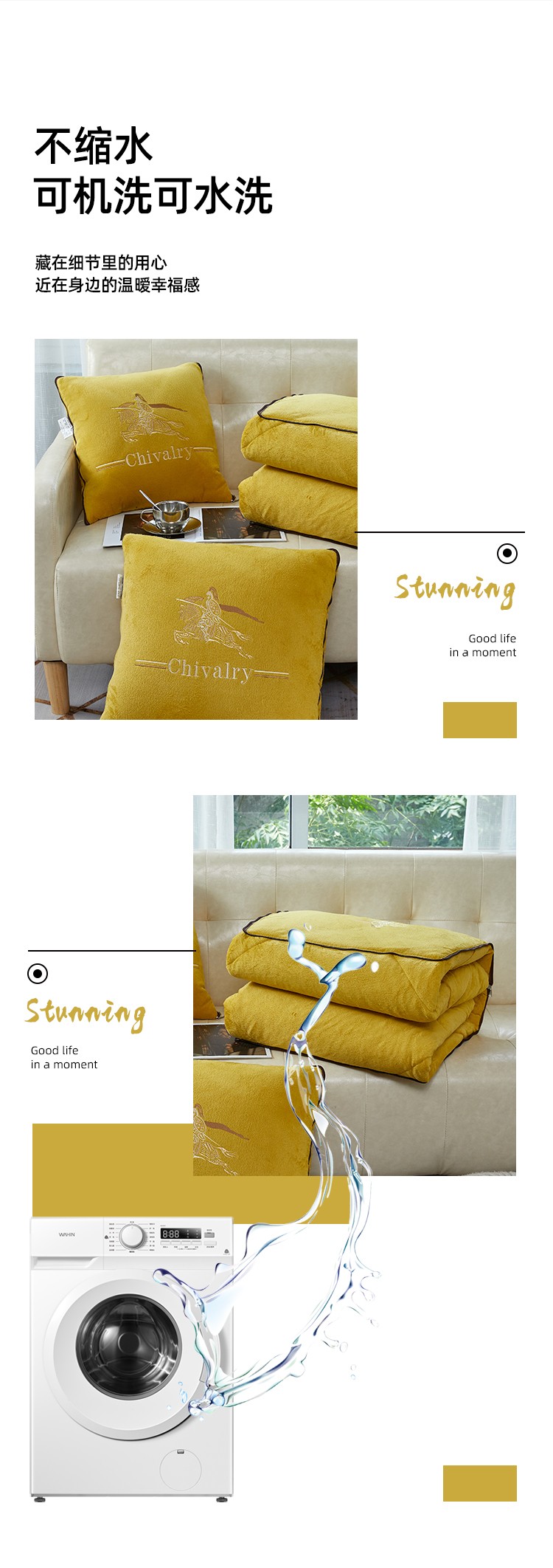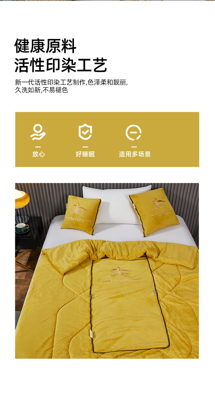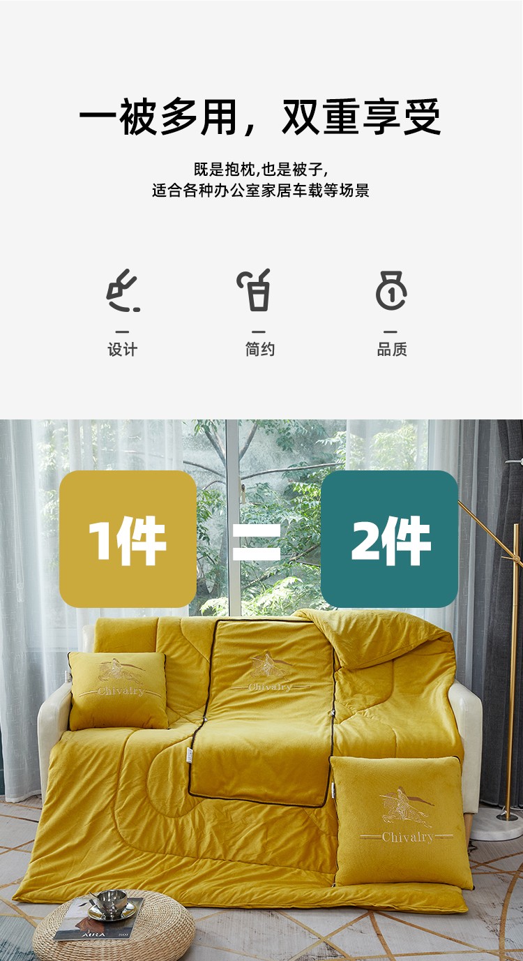 商品名称:翰轩家居 2022新款水晶绒绣花抱枕被系列-骑士 骑士-姜黄