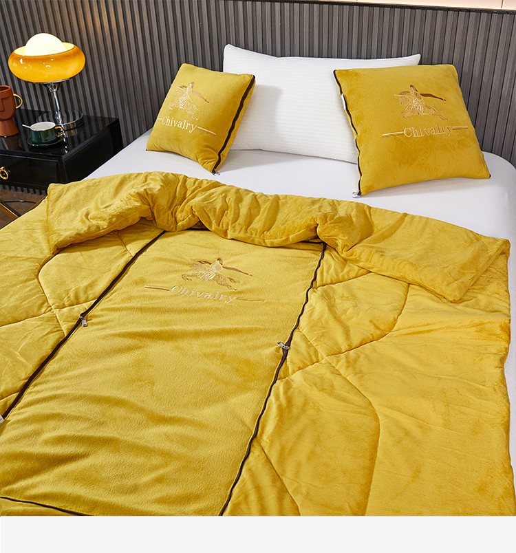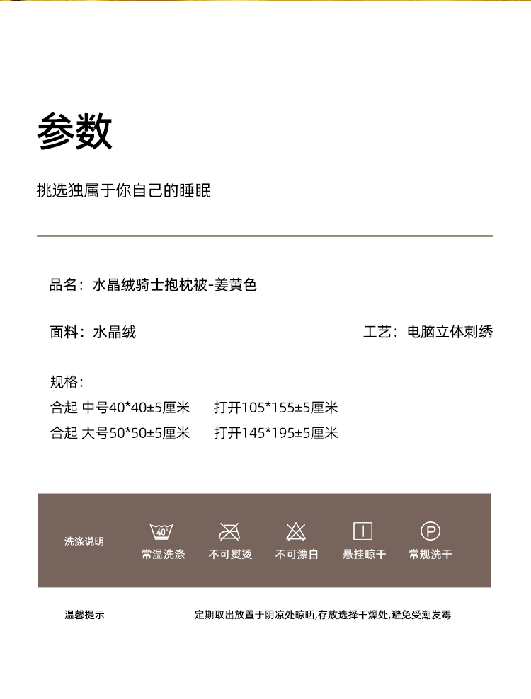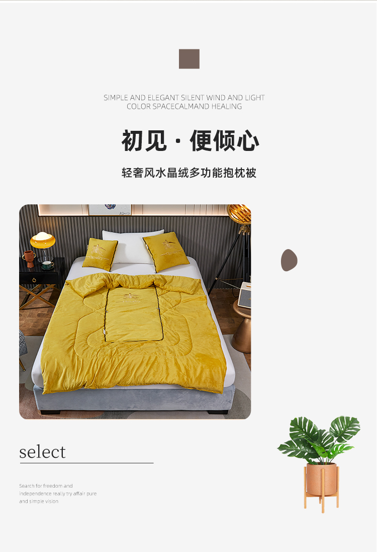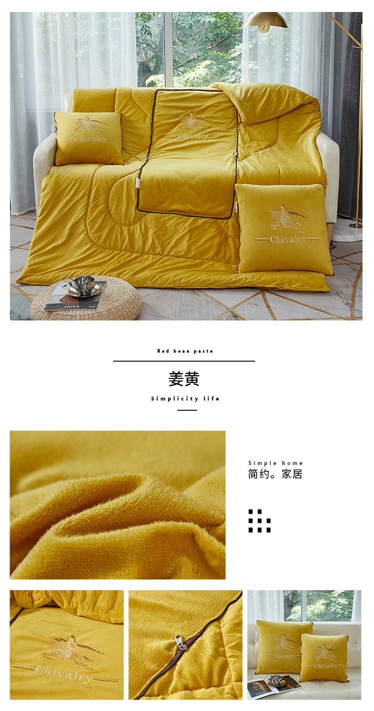 商品名称:翰轩家居 2022新款水晶绒绣花抱枕被系列-骑士 骑士-姜黄