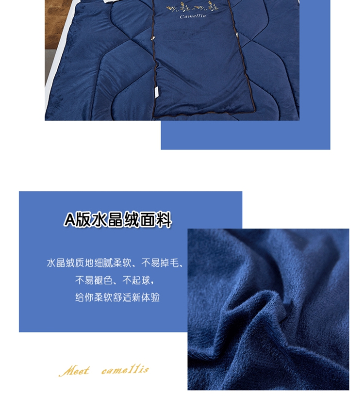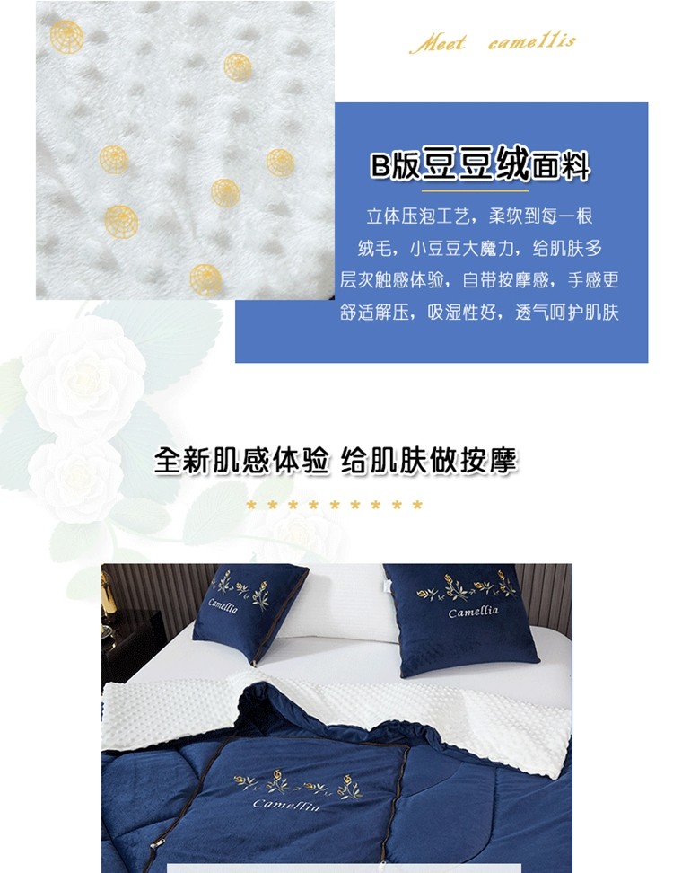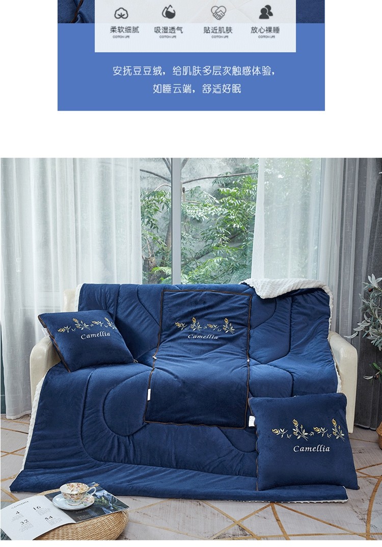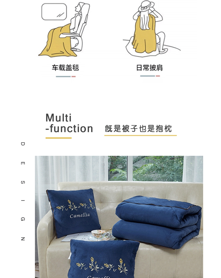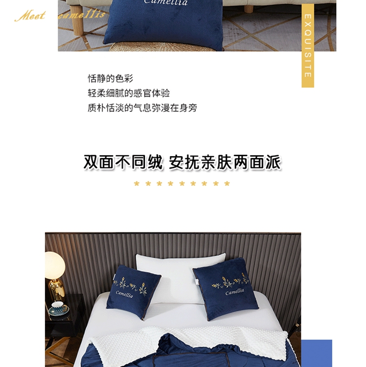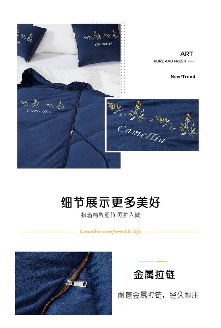 商品名称:翰轩家居 2022新款水晶绒绣花抱枕被系列-山茶花开 藏青