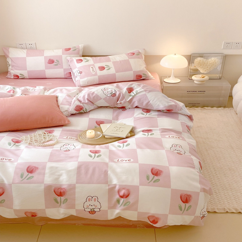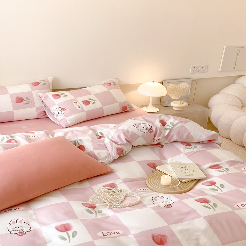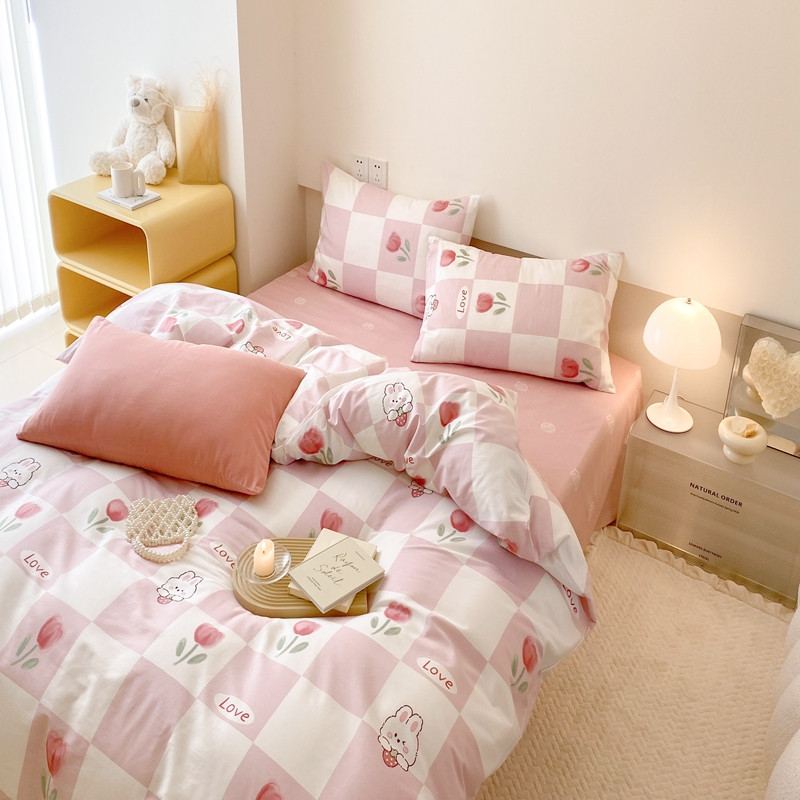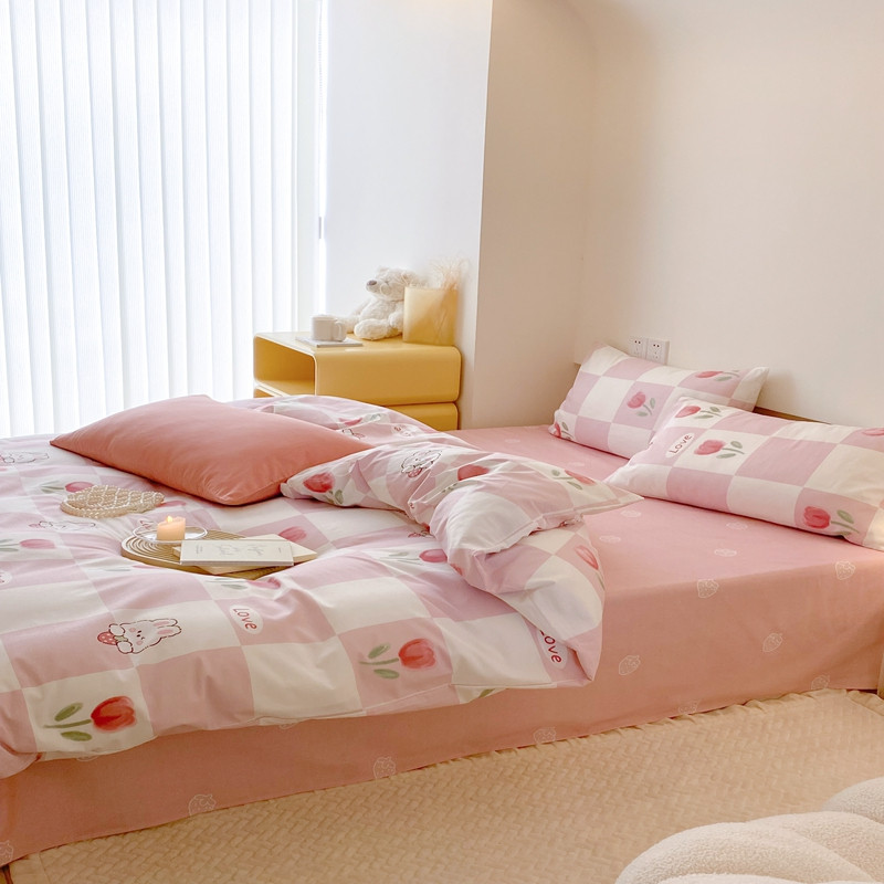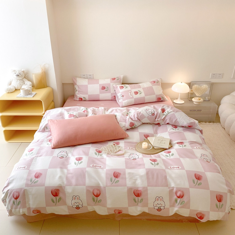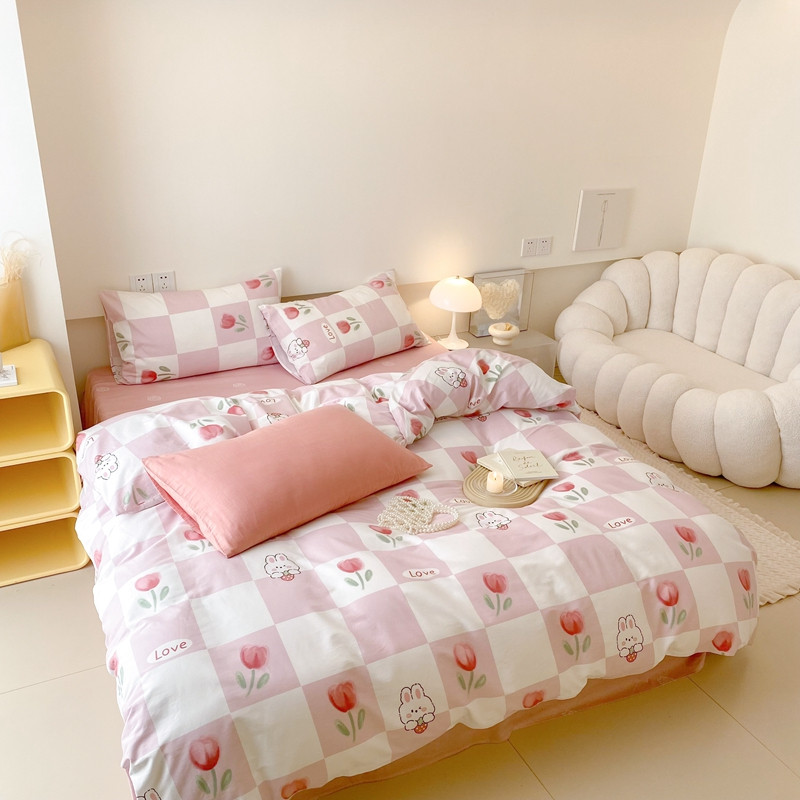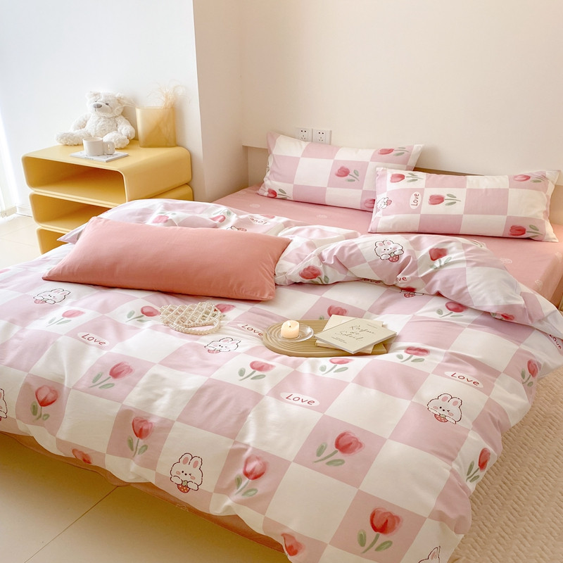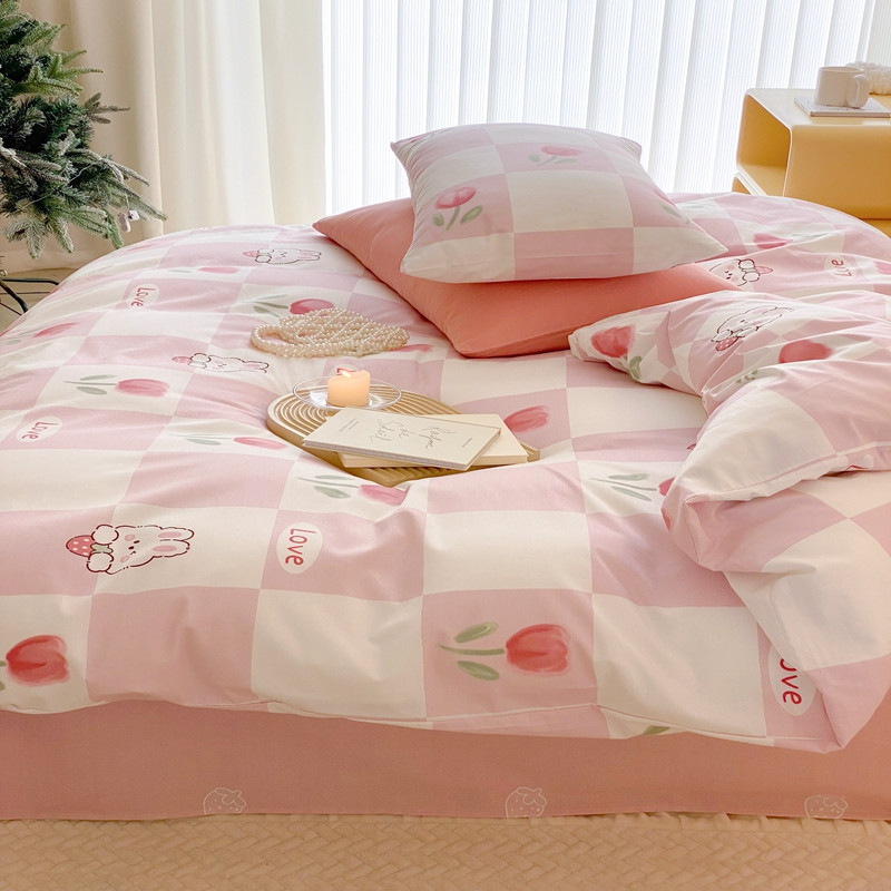 昔可 2022新款全棉四件套影棚图2 粉格兔