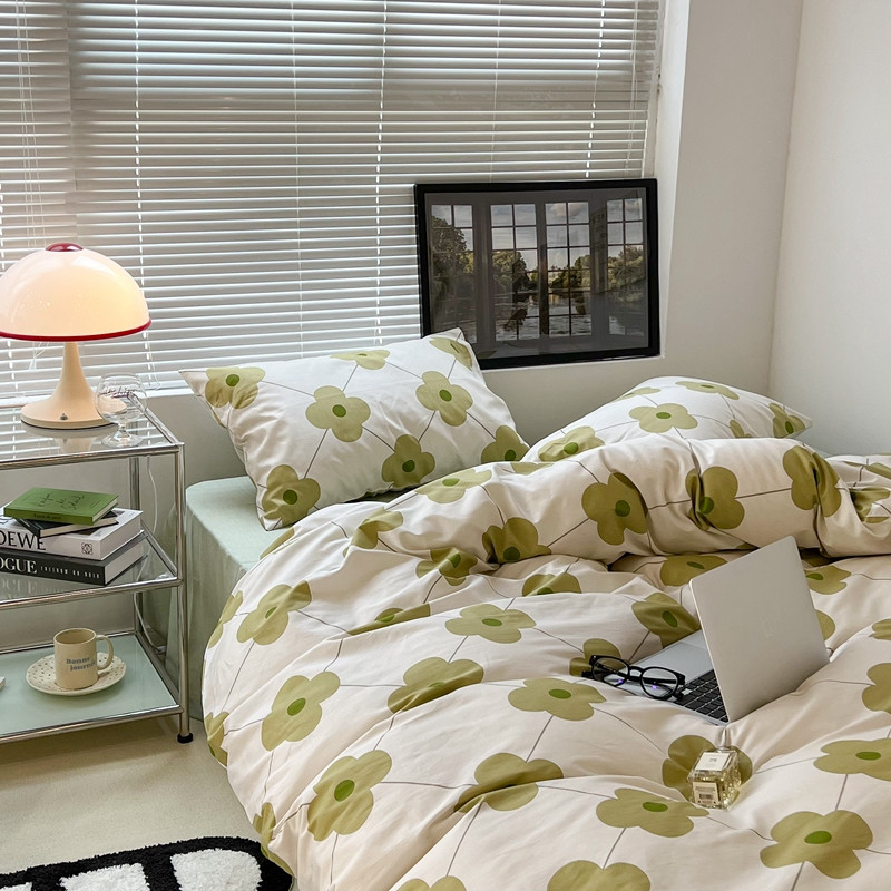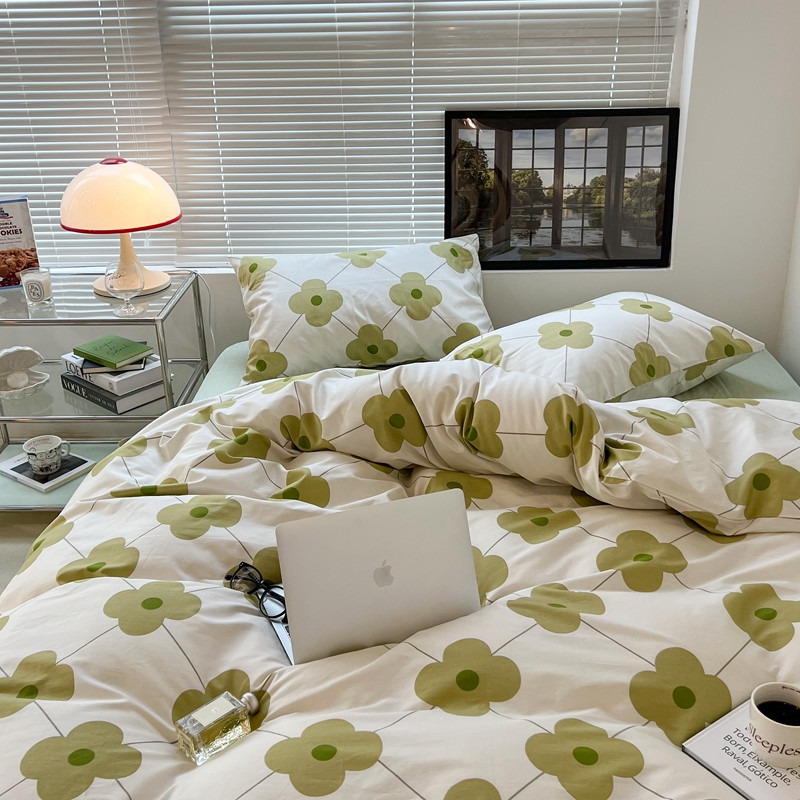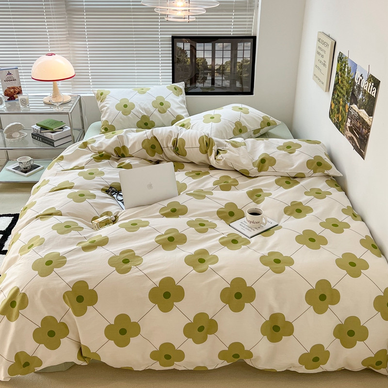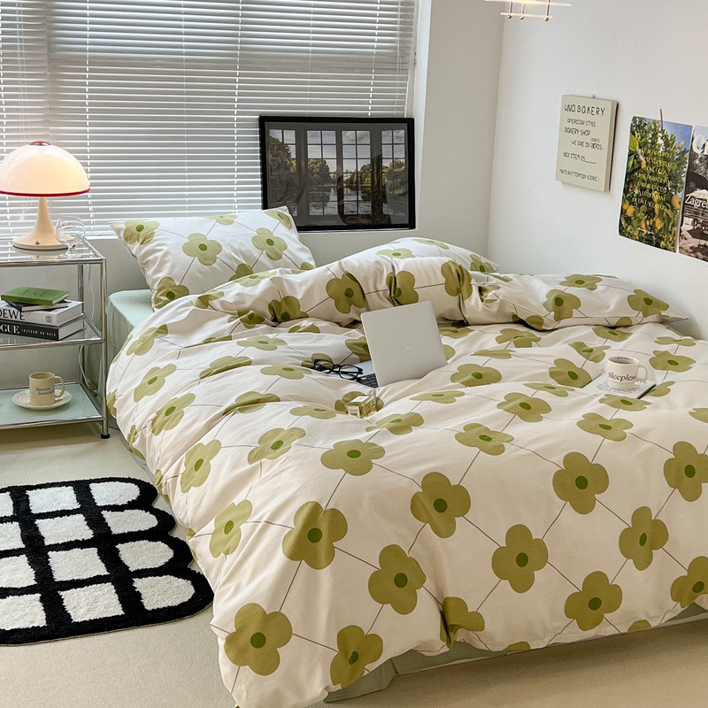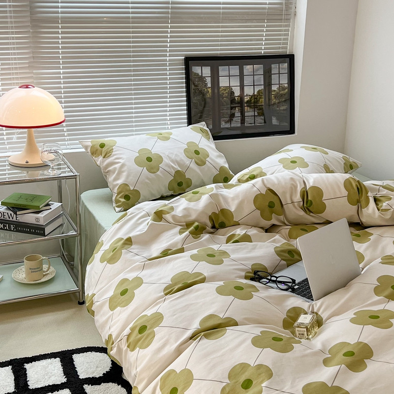 昔可 2022新款简约花朵四件套 幸运四叶花绿